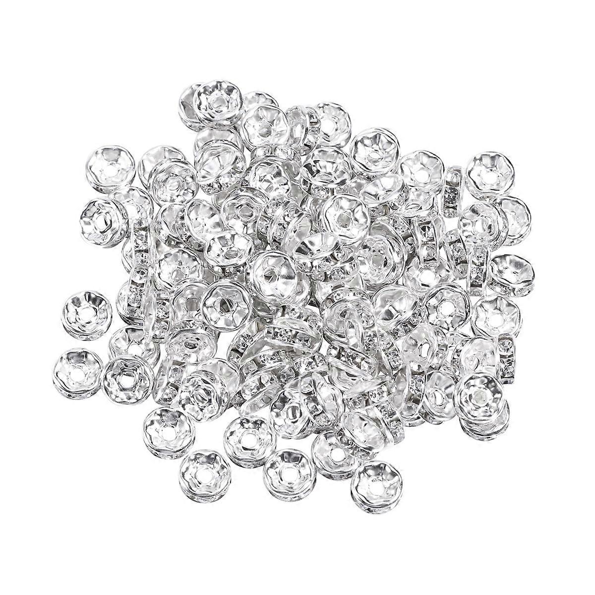 HEMOTON 100pcs Rhinestone Rondelle Spacer Bead Plated 8mm Beads Findings for Jewelery Making DIY Art Craft (Silver)
