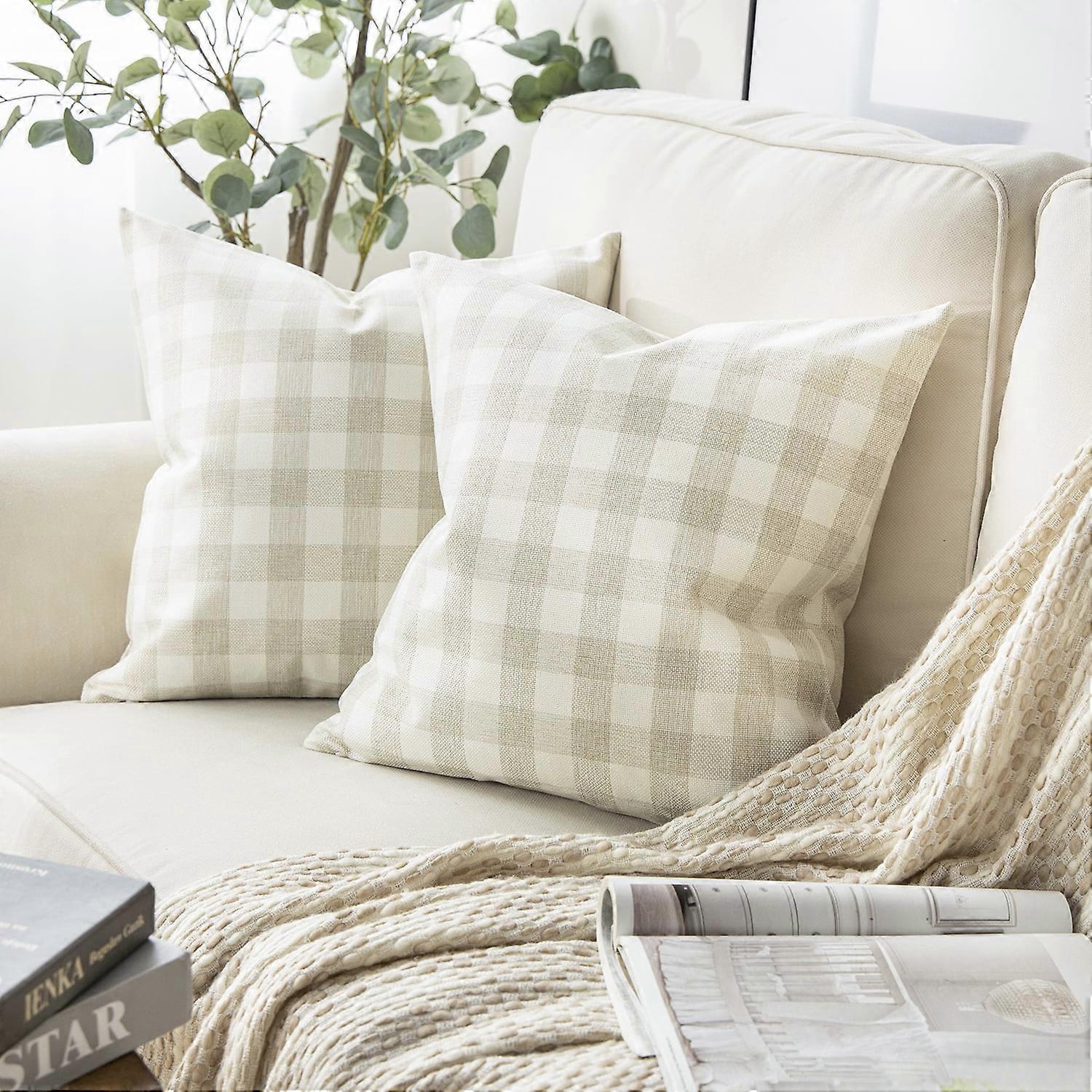 Checkers Series Square Decorative Throw Pillow Covers, Classic Retro Plaids, 20"x20", Off White, Set of 2