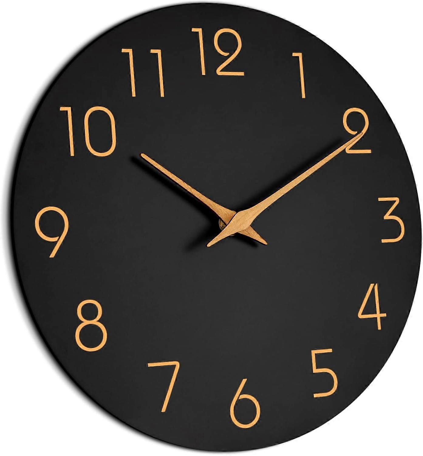 Wall Clock 10" Black, Battery Operated Silent Non-Ticking, Minimalist Rose Gold Numbers, Compatible with Home Decor, for Living Room, Kitchen, Office