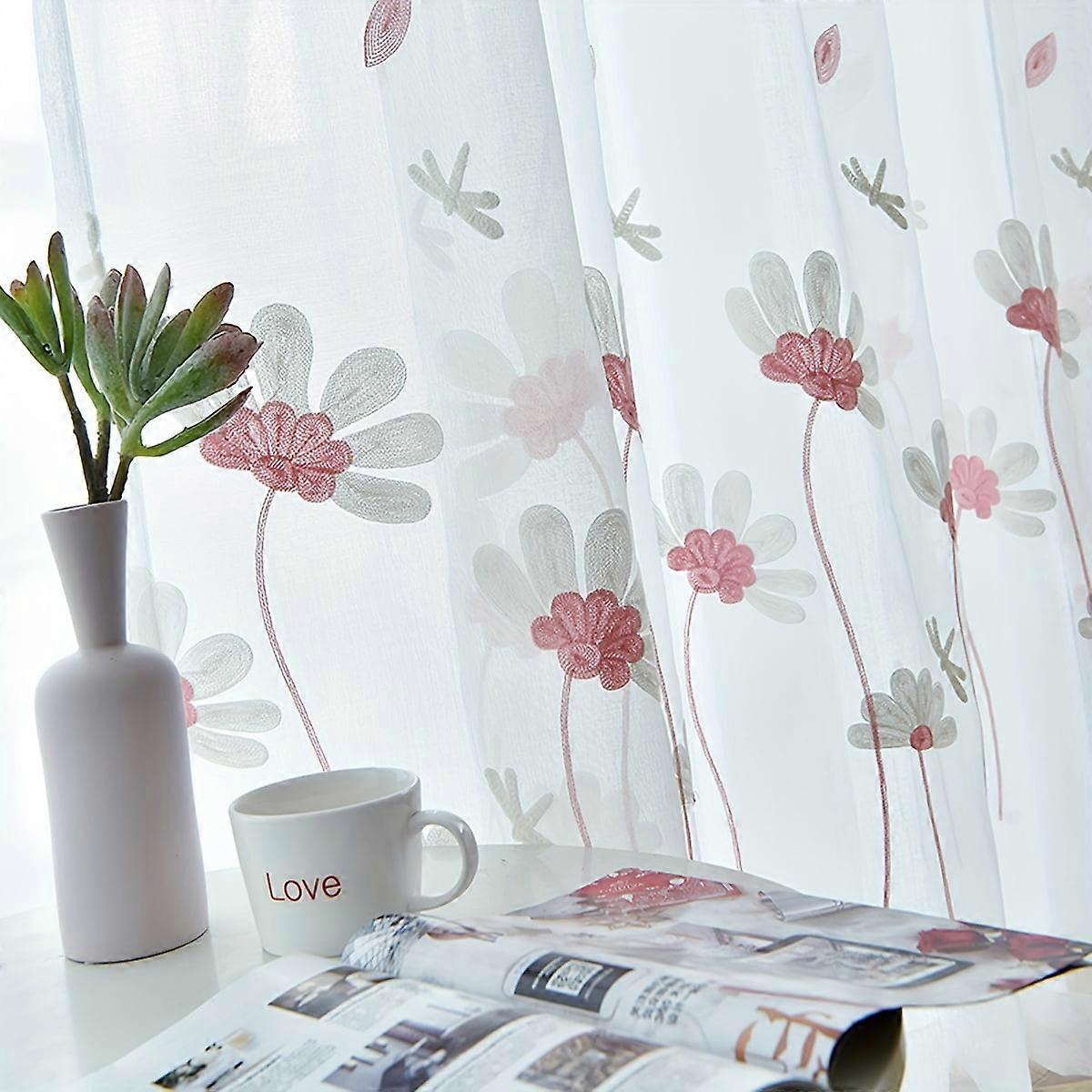1pc Delicate Floral Embroidered Tulle Curtain with Rod Pocket, Translucent Sheer for Living Room, Bedroom, Easy Care, Durable, Pastoral Style