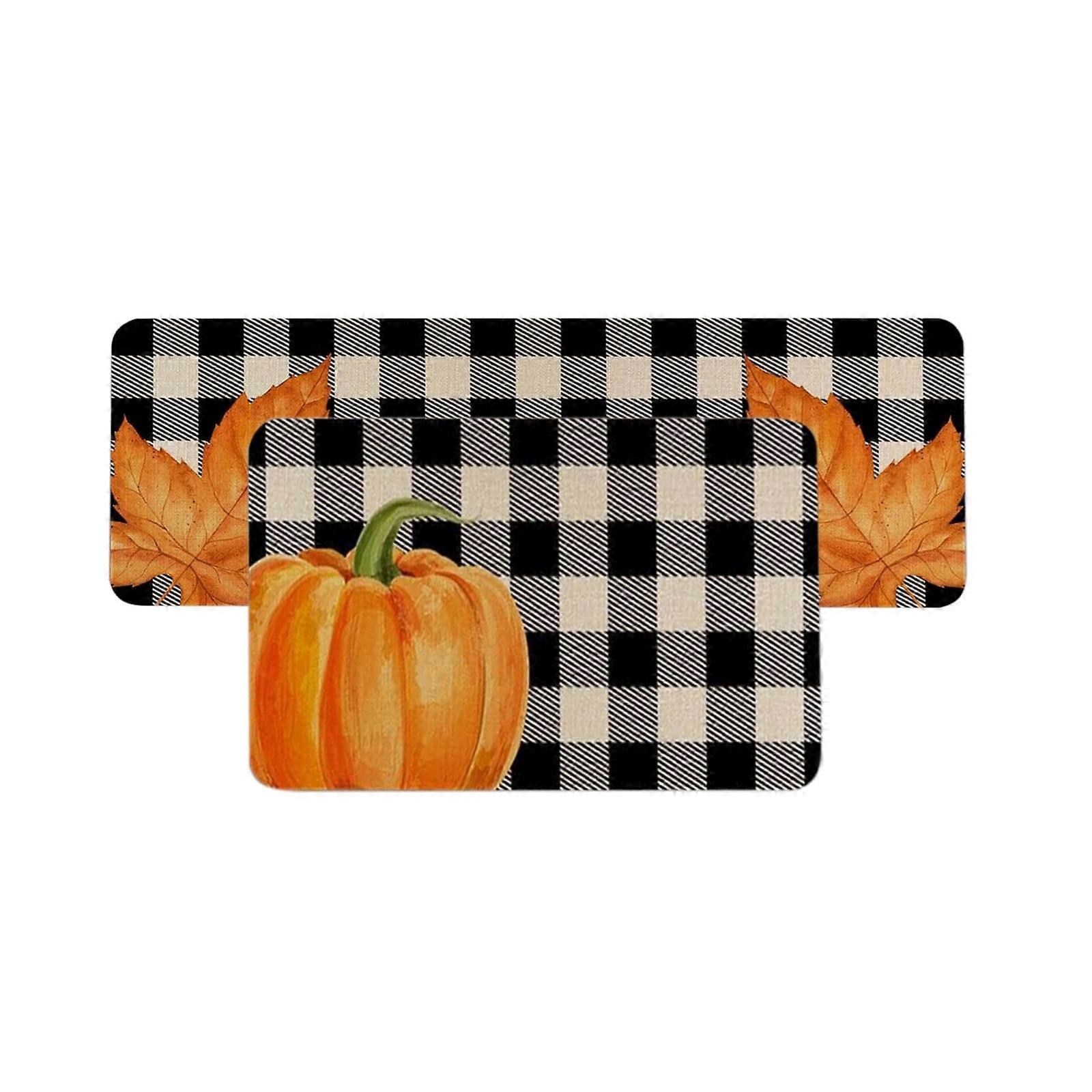 Ruhiku GW Pumpkin Kitchen Mat Strip Absorbent Kitchen Rug Decorative Door Mat Two Pcs