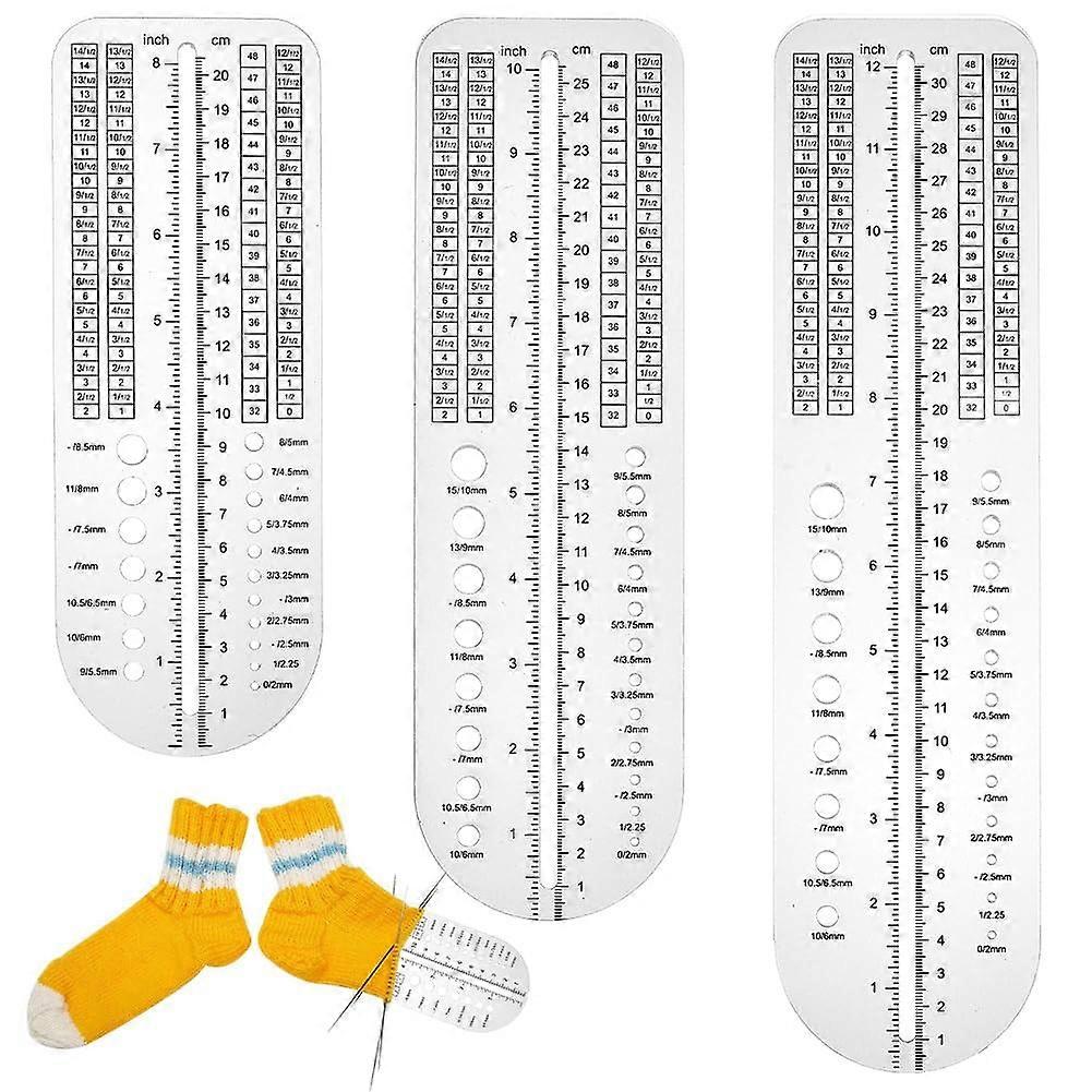 3Pcs Clear Acrylic Sock Ruler 8/10/12 Inch Knitting Needle Gauge Measuring Tool for Crochet DIY Crafts Handmade Gift