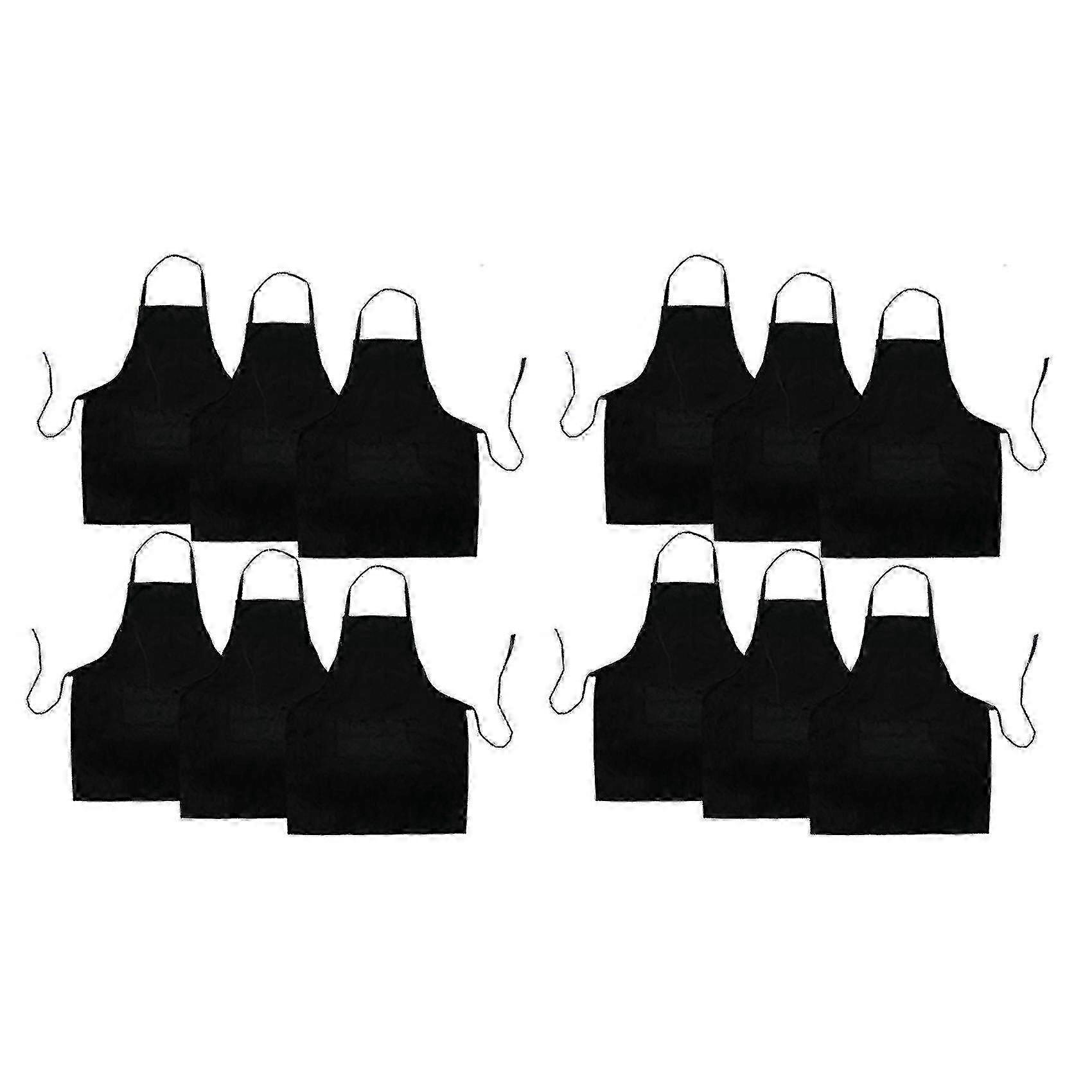 12 Pack Black Kitchen Apron With 2 Pockets Anti-dirty Apron Suitable For Barbecue Kitchen Cooking B-yvan