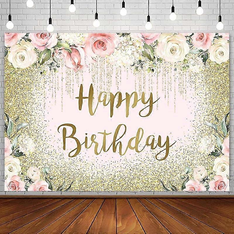 Rose Gold & Navy Birthday Backdrop for Girls/Women, Floral Glitter Bokeh, Compatible with Happy Birthday Photoshoot Decor