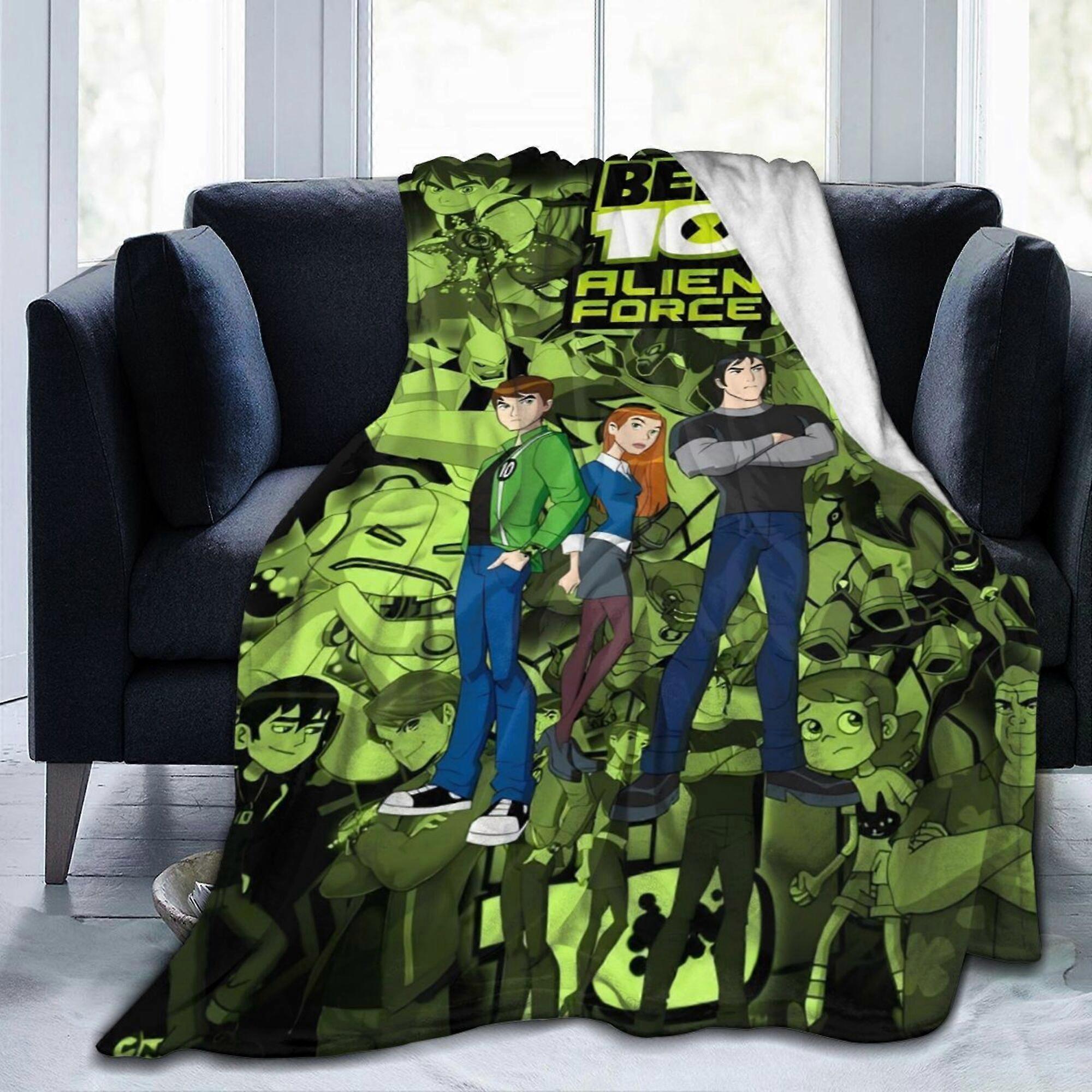 Ben 10 Alien Force Flannel Throw Blanket - Polyester, All-Season, Glam Cartoon Style, Soft & Cozy for Home, Travel, Christmas, Halloween