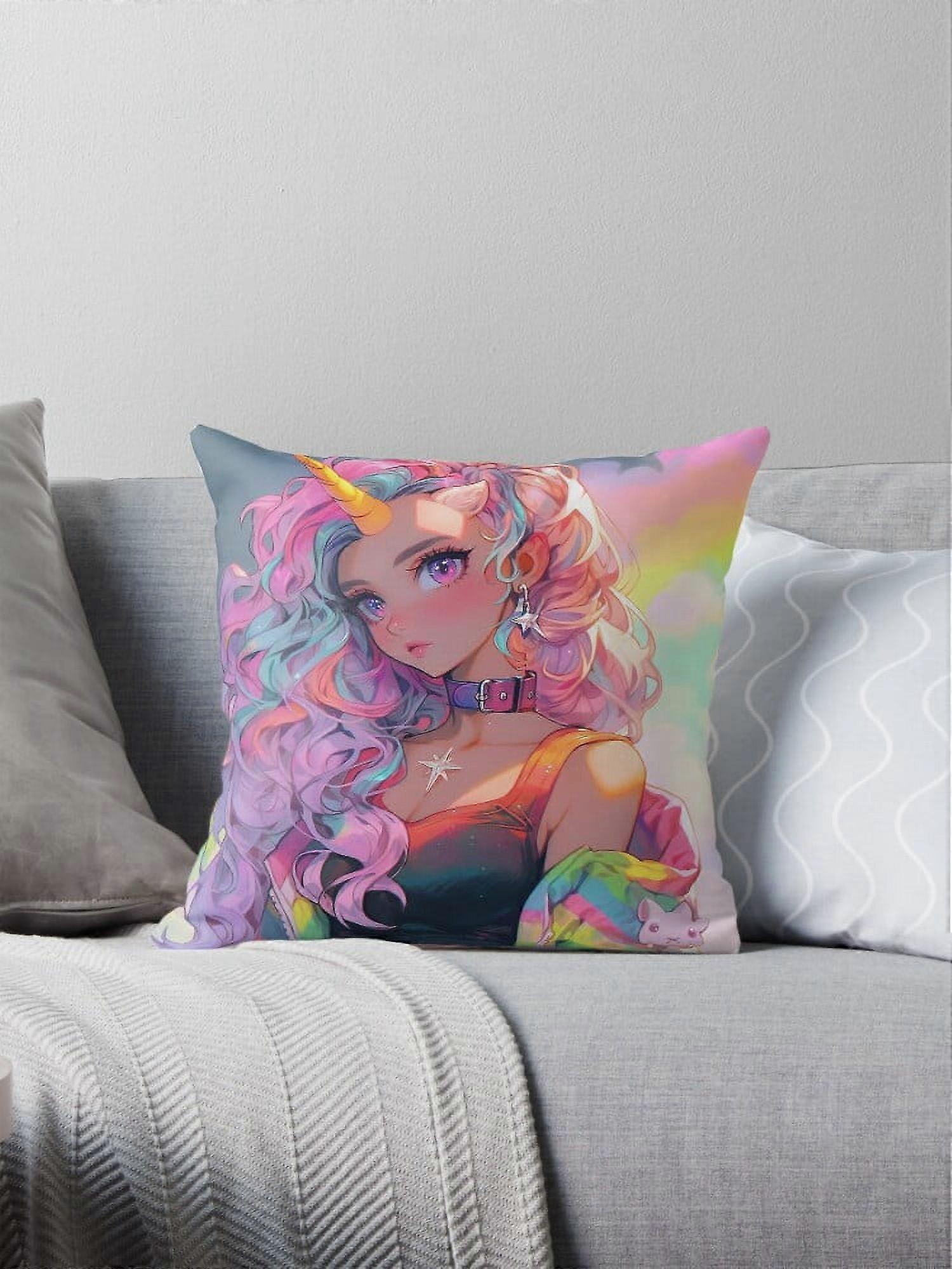 AIVO Cute Rainbow Summer Unicorn Horn Anime Girl Throw Pillow Covers Cases Cushion Cover Case Sofa Two Side