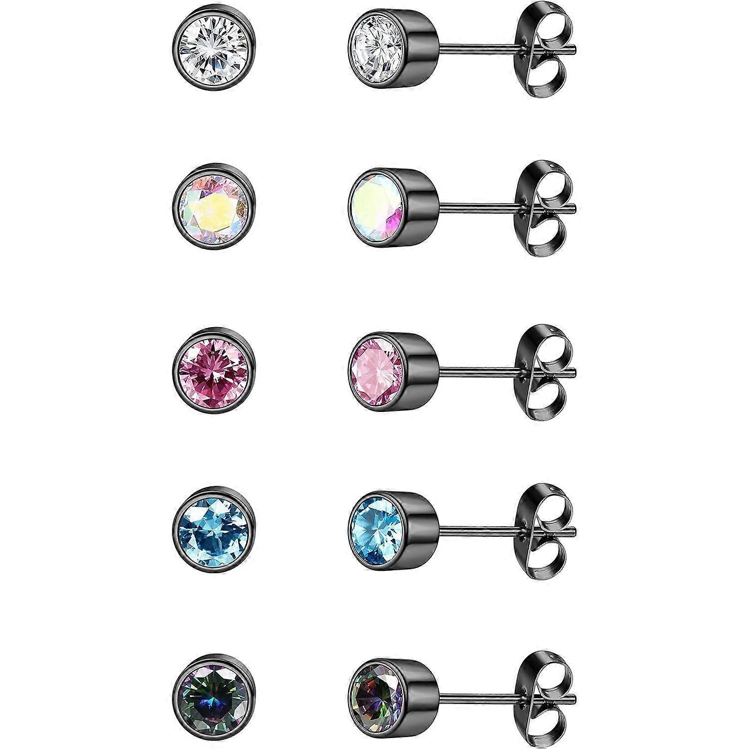 Jstyle 5 Pairs G23 Titanium Stud Earrings for Sensitive Ears, Cubic Zirconia Hypoallergenic Sleepers, Cartilage Earrings Set for Women Men