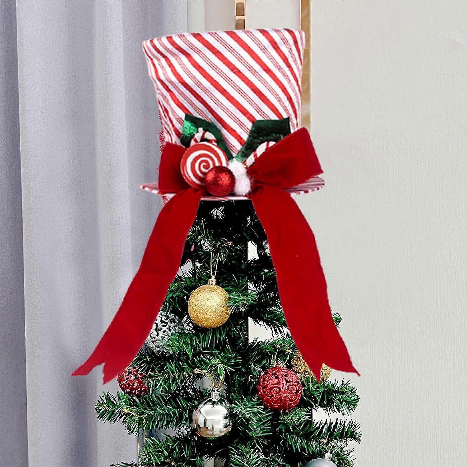Christmas Tree Topper Hat 8.6 Inch Large Red Velvet Hat With Peppermint Candy Lollipop Stripe & Glittering Colorful Polka Dot Bow Ornament For Winter Holiday Xmas Tree Decor ( Features: Christmas Tree Topper: Our red and green top hat is a ideal partner for Christmas tree to some nice to your Xmas decor. Designed with a striped bowknot, the treetop hat will make your tree look more attractive. Excellent Quality: Made of premium materials and sturdy metal frame inside, our topper hat can be used for years. The size of hat is 8.6" x 7.8", suitable for most Christmas trees. You can collapse the hat and store it in a box when not use for saving storage . Classic & Exquisite: Our Christmas tree topper hat is designed with red, white cloth tape bow, decorated with cute lollipop ornaments. Holiday Home Decor: You can put the elegant hat on the top of the Christmas tree, or decorated as a snowman hat in winter, you can also display the hat in your room, kitchen, desk, , fireplace as a holiday table centerpieces, which meshes well with other Christmas decorations in winter. Gift: Our Christmas tree topper is a wonderful holiday present for your family. Put the hat on the top of the Xmas tree, give your guests and family a at Christmas. Product Description: Christmas Tree Topper Hat 8.6 Inch Large Red Velvet Hat with Peppermint Candy Lollipop, Stripe & Glittering Colorful Polka Dot Bow Ornament for Winter Holiday Xmas Tree Decor ( Material: cotton Color: as the picture shows, (Due to the difference between different monitors, the picture may have slight color difference. please make sure you do not mind before ordering, Thank you!) Package weight: 340g Package size: 25x24x5cm,(Please allow 1-3mm error due to manual measurement. please make sure you do not mind before ordering.) 【Christmas Tree Topper】: Our red and green top hat is a ideal partner for Christmas tree to add some nice to your Xmas decor. Designed with a striped bowknot, the treetop hat will make your tree look more attractive. 【Excellent Quality】: Made of premium materials and sturdy metal frame inside, our topper hat can be used for years. The size of hat is 8.6" x 7.8", suitable for most Christmas trees. You can collapse the hat and store it in a box when not use for saving storage space. 【Classic & Exquisite】: Our Christmas tree topper hat is designed with red, white cloth tape bow, decorated with cute lollipop ornaments. 【Holiday Home Decor】: You can put the elegant hat on the top of the Christmas tree, or decorated as a snowman hat in winter, you can also display the hat in your room, kitchen, desk, office, fireplace as a holiday table centerpieces, which meshes well with other Christmas decorations in winter. 【Gift】: Our Christmas tree topper is a wonderful holiday present for your family. Put the hat on the top of the Xmas tree, give your guests and family a surprise at Christmas.