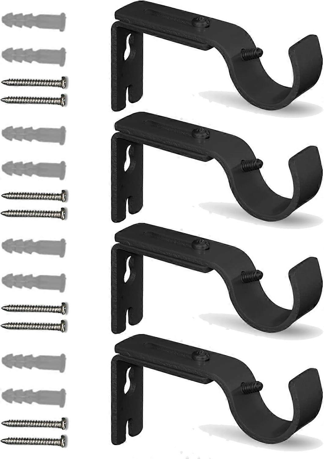 QualityDen Adjustable Curtain Rod Bracket - Metal Curtain Rod Holders with Screws for 1 Inch Wall Rod, Heavy Duty & Rust Resistant (Black - 4 pcs)