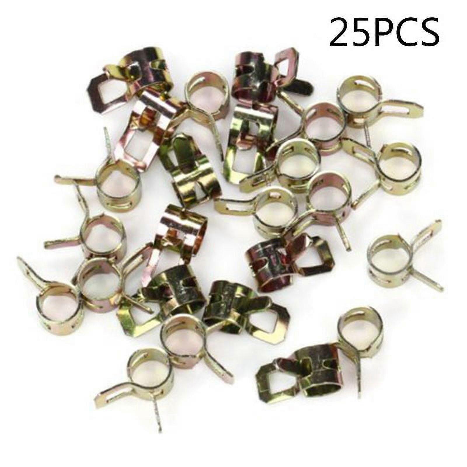 25Pcs 1/4" Fuel Line Clamps Fits 1/4" Hose Universal Spring Action Lawn Mower