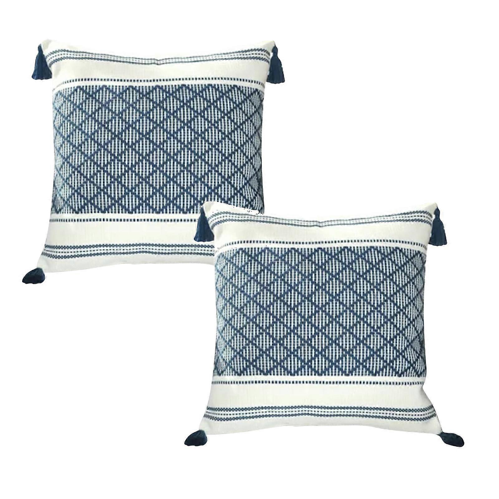 Decorative Throw Pillow Cover With Tassels 18x18 Inches Navy Blue/ | Boho Geometric Pillow Cover *2PCS