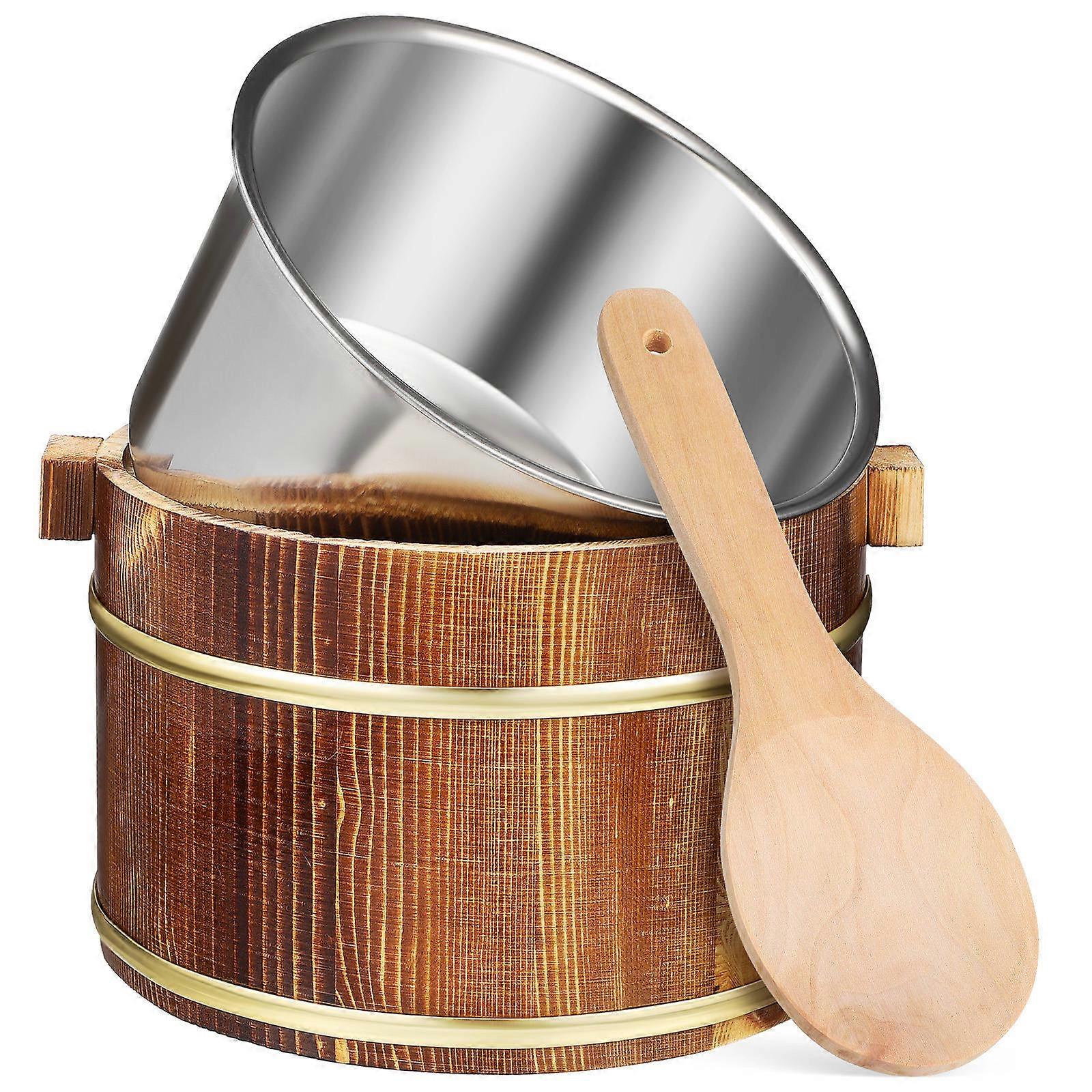 Rice Bucket Steamer Wooden with Stainless Steel Liner for Storage Kitchen Use