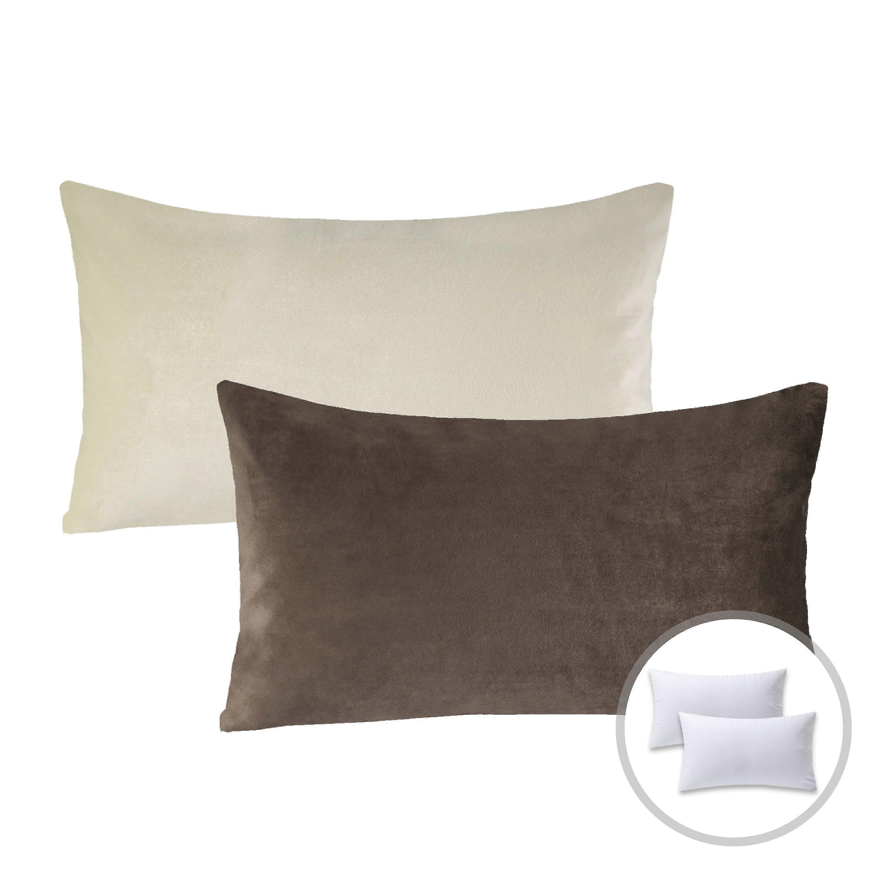 Phantoscope Christmas holiday Decorative Throw Pillow Set, Silky Velvet Series Covers with inserts, 12" x 20", Dark Coffee and Off White, 2 Pack