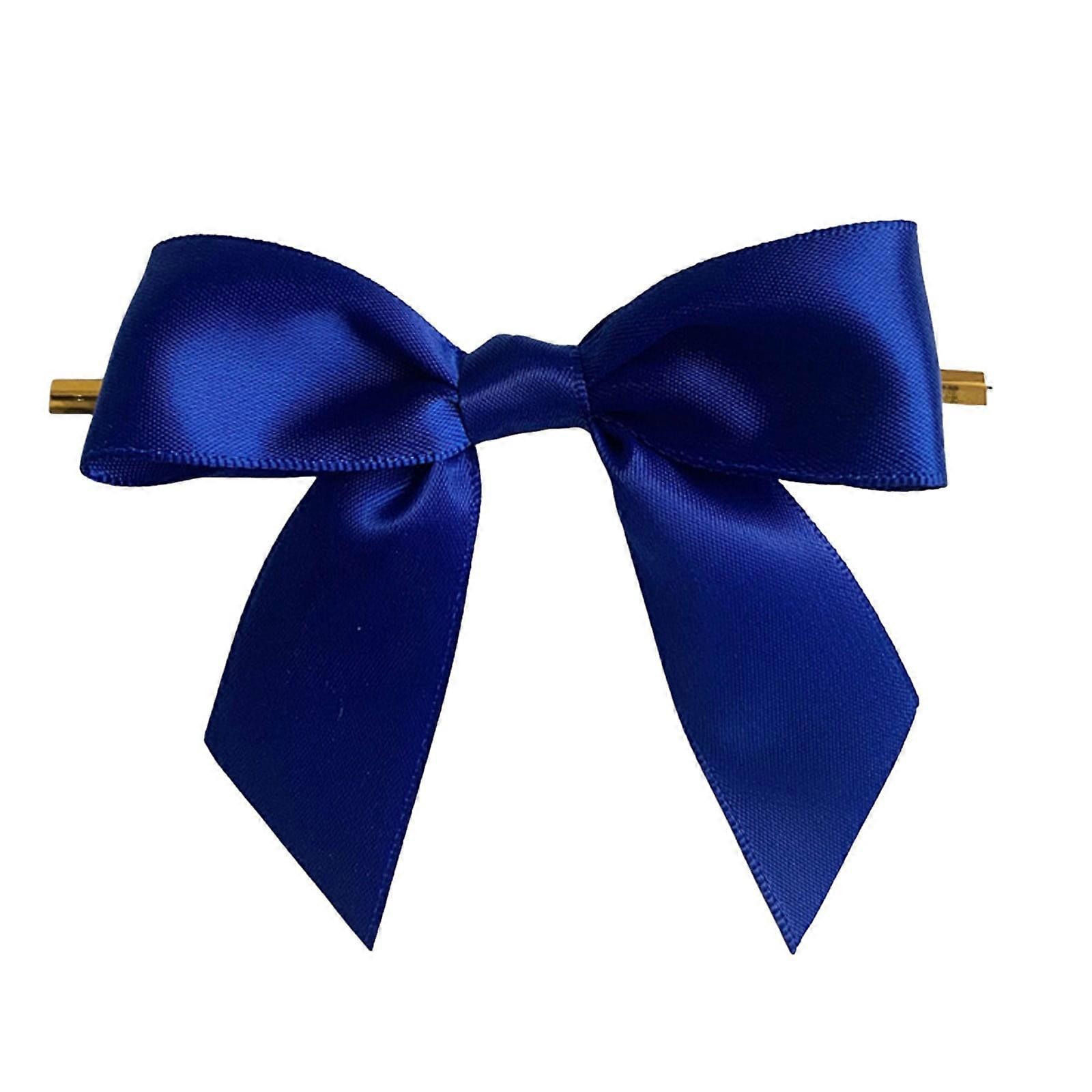 Bentne Twist Tie Bows, Satin Ribbon Bows 3.4" 50-Pack for Gift Wrapping, Party Decor - Blue