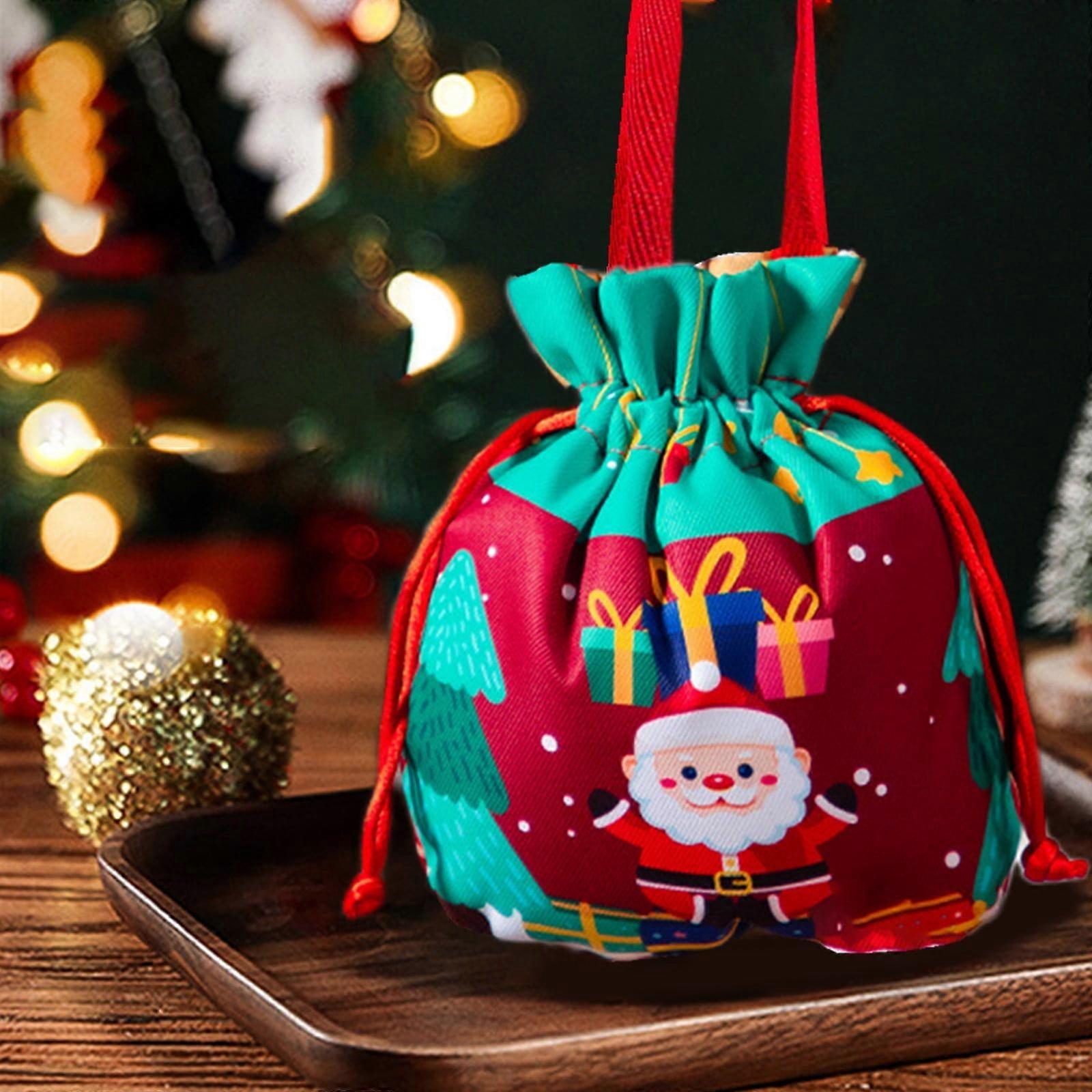 Christmas Gift Bags 5 Pcs, Compatible with Xmas Party Favors, Candy Snack Drawstring Bags, Holiday Handbag Decorations