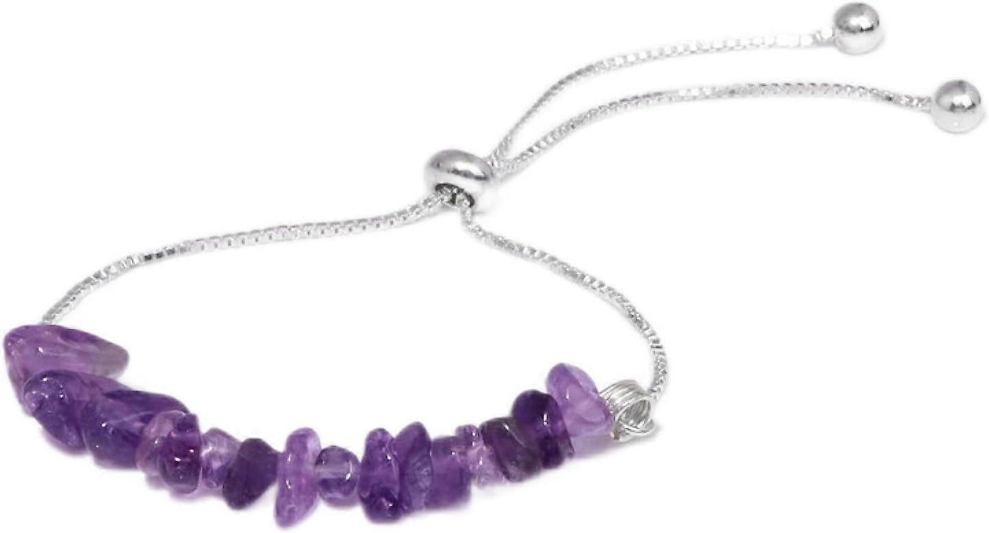 Irregular Crystal Natural Chip Stone Bracelets for Women Men Adjustable Silvery Color Chain Bracelet Wristband,Amethyst,Adjustable