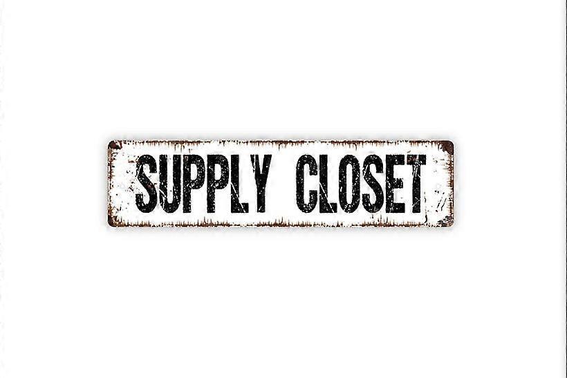 (Aluminum metal) Supply Closet Sign Distressed Bathroom Rustic Metal Street Sign or Door Name Plate Plaque Size: 4 x 16 Inch