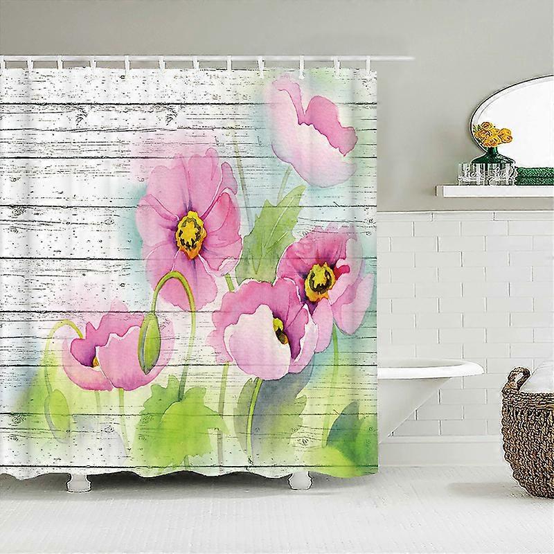 Colorful Flowers Shower Curtains With 12 Hooks Tulip Floral Printed Fabric Shower Curtain Waterproof Polyester Bath Screen
