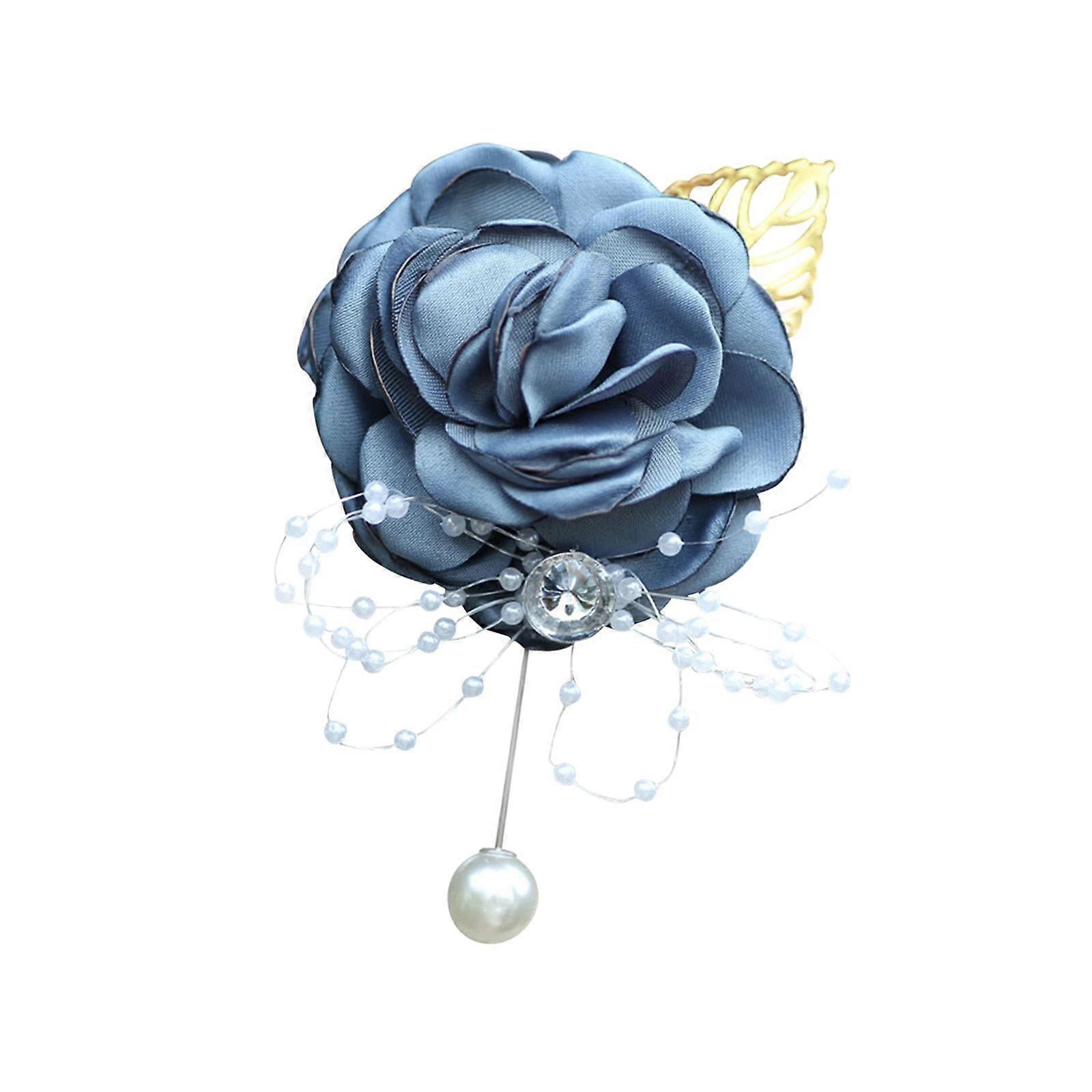 S SERENABLE Wedding Boutonniere Brooch Pin for Suit Women Bride Rhinestone Rose Boutonniere Flower Boutonniere for Events Valentine's Day Blue