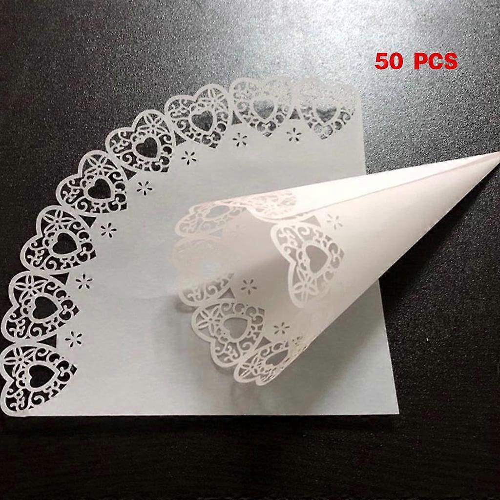 JUNTEX 50pcs Laser Cut Love Heart Lace Laying Candy Wedding Party Favors Confetti Cones