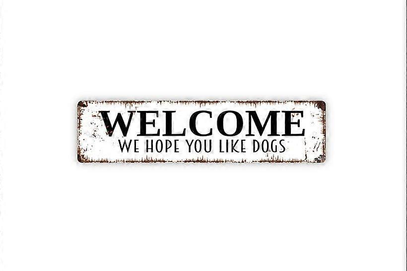 Welcome We Hope You Like Dogs Sign Funny Dog Rustic Metal Sign Rustic Street Sign or Door Name Plate Plaque Size: 4 x 16 Inch