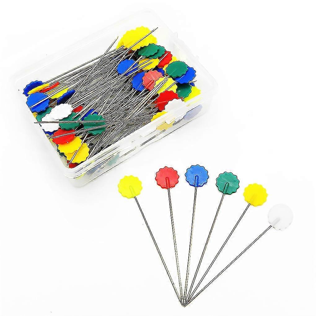 Hi.FANCY 100Pcs Plastic Flat Head Straight Quilting Mixed Color DIY Sewing Needles, Dark Color Flower