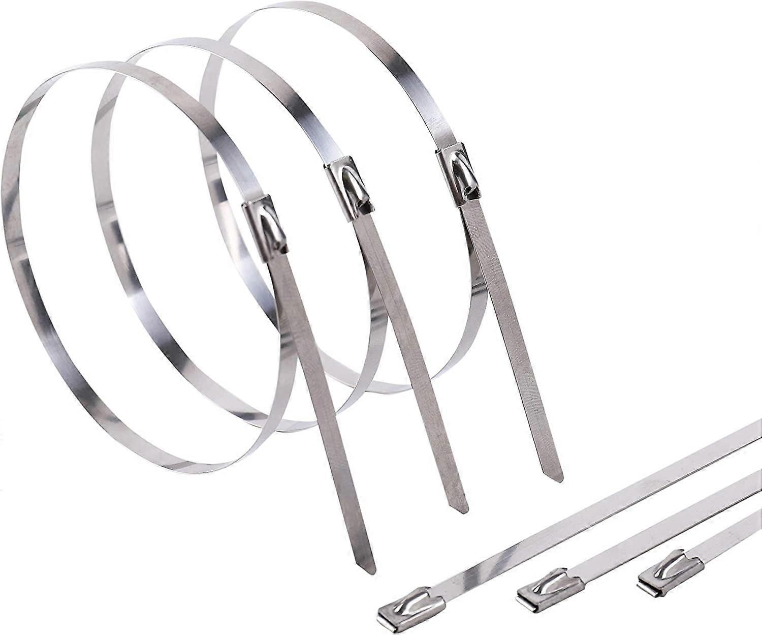 100 Pcs 11.8" 304 Stainless Steel Cable Ties, Heavy Duty Locking Zip Ties for Exhaust, Fence, Pet Cages, Outdoor - Happon