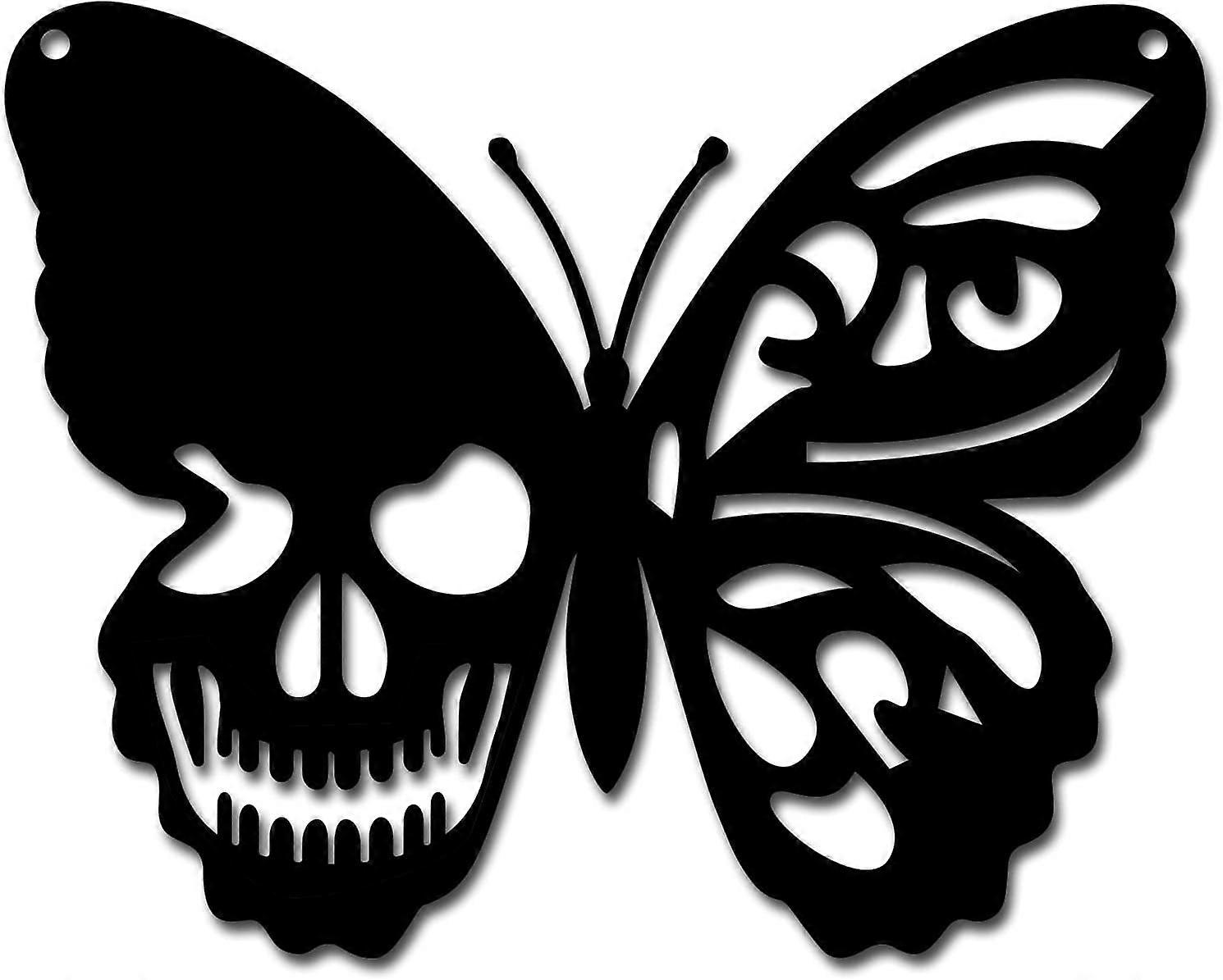 Skull Metal Wall Art Butterfly Decor, Iron Wall Hanging Plaque Ornament for Indoor Outdoor Home, Living Room, Kitchen, Garden, Office, Black 6.3 x