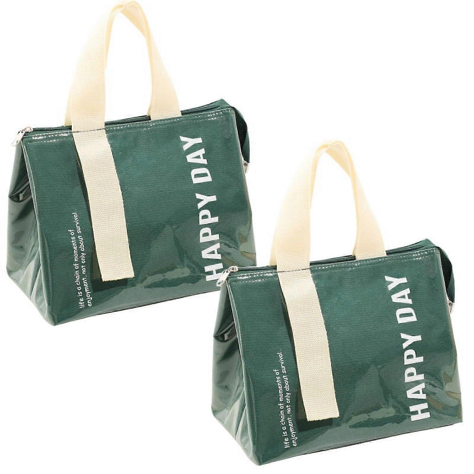2PCS Cool Bag Small Lightweight Insulated Bag Foldable Lunch Bag Lunch Bag Thermal Shopper for Work School (Dark Green)