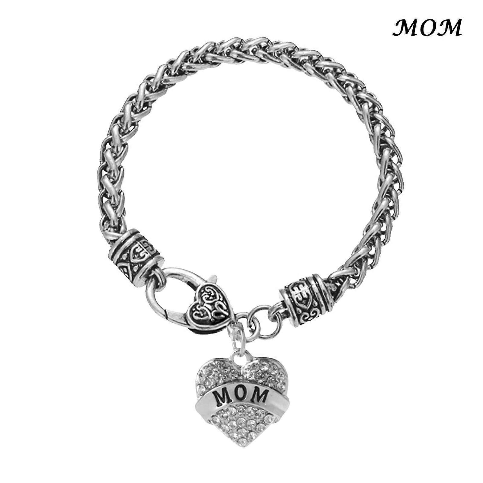 Bracelet Family Friends Love Heart Ceystal Rhinestone Bangle Chain Charm Mom Daughter Grandma Teacher Birthday Mother Gift (Bracelets)