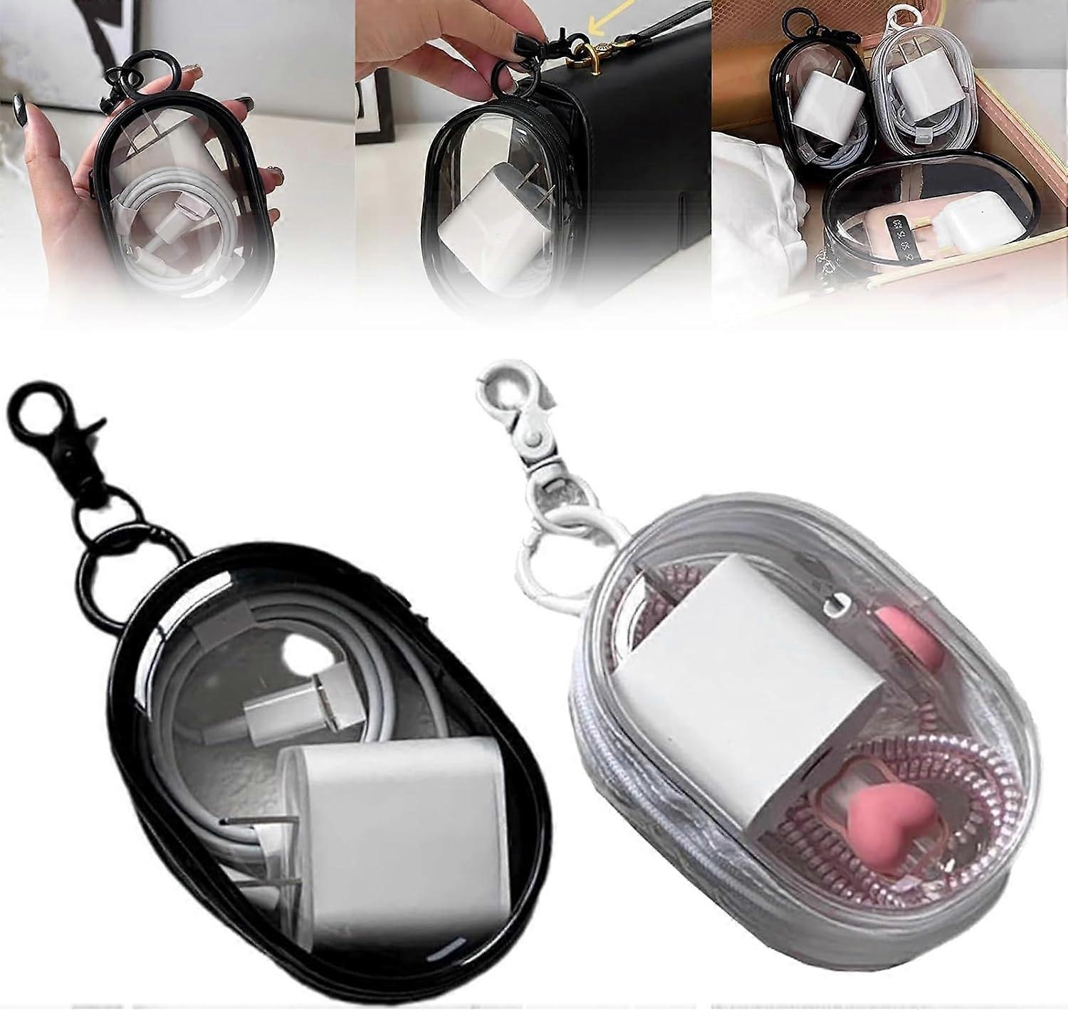 Product Description Mobile Phone Charger Organizer Bag – 2PCS Clear, Waterproof, and Portable Storage for Cords, Cables, and Gadgets – Perfect for Purse and Travel Product Details Name: Mobile Phone Charger Organizer Bag Material: Highly Transparent and Environmentally Friendly PVC Size: 2.56 x 1.42 x 4.13 inches Colors Available: Black, White Package Includes: 2 x Mobile Phone Charger Organizer Bag Durable & Waterproof Protection: Crafted from high-quality PVC, our Mobile Phone Charger Organizer Bag features a clear, hard shell design that is tear-resistant and waterproof, ensuring your accessories stay safe and dry during travel or daily use. Spacious & Organized: This transparent storage bag offers ample space to neatly organize your mobile phone chargers, data cables, and other small items. Keep everything in its place and easily accessible, reducing clutter and preventing loss. Versatile Multi-Use Design: Beyond charging accessories, this clear hard shell case doubles as a cosmetic bag, jewelry organizer, or travel pouch. Its multifunctionality makes it perfect for storing small essentials like lipsticks, brushes, keys, and cards. Secure & Smooth Zipper Closure: The organizer features a robust metal zipper and reinforced seams, ensuring durability and preventing leaks or breakage. The zipper's smooth sliding action makes it easy to open and close the bag securely. Ideal Travel Companion & Gift: Compact and lightweight, this cable organizer is perfect for travel, fitting easily into backpacks or purses. Its transparent design allows quick access to contents, making it a practical gift for travelers, students, and professionals who need to keep their cables and small items organized.