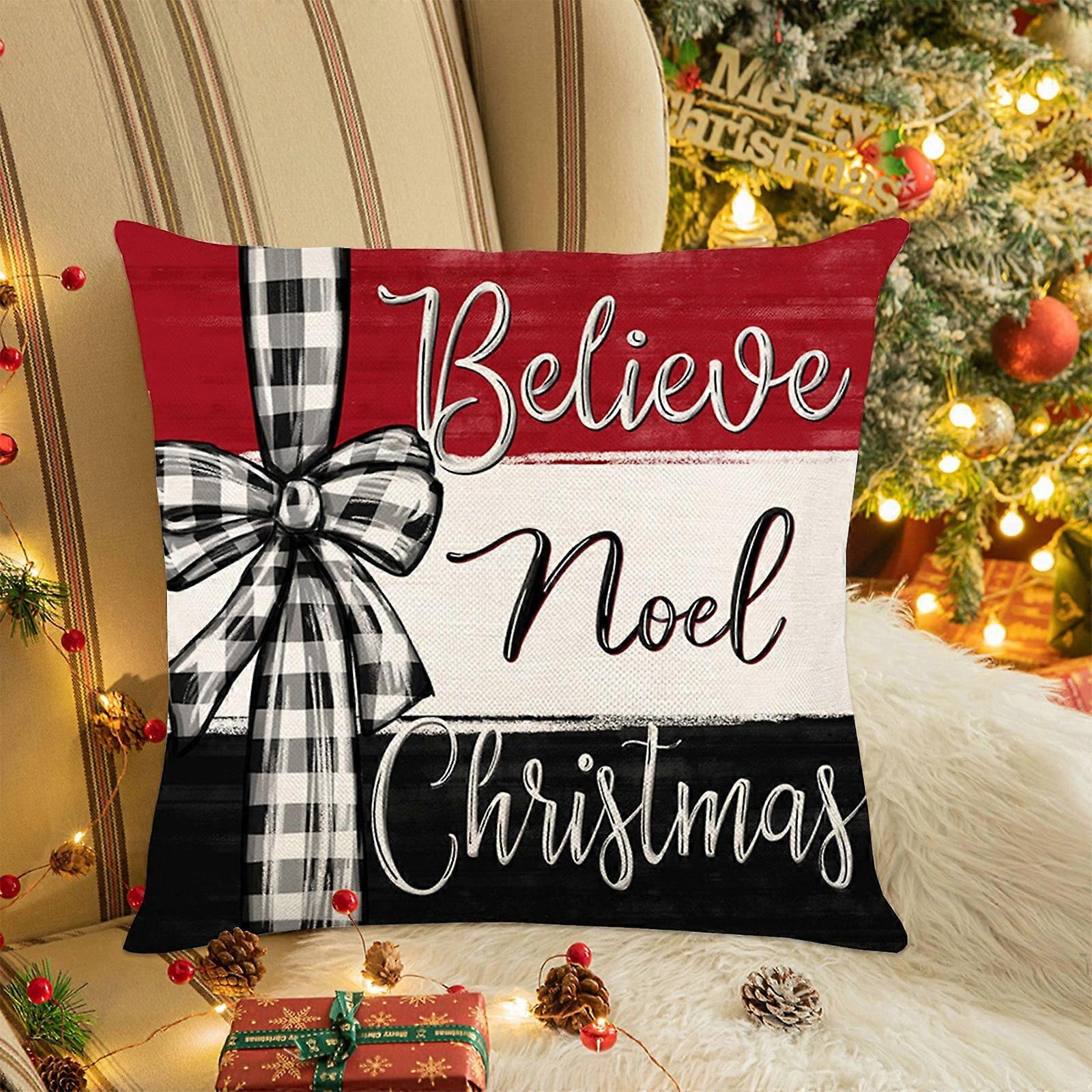 Gnobogi Linen Christmas Pillowcase 17.71x17.71in, Compatible with Home Sofas, Holiday Decor on Clearance