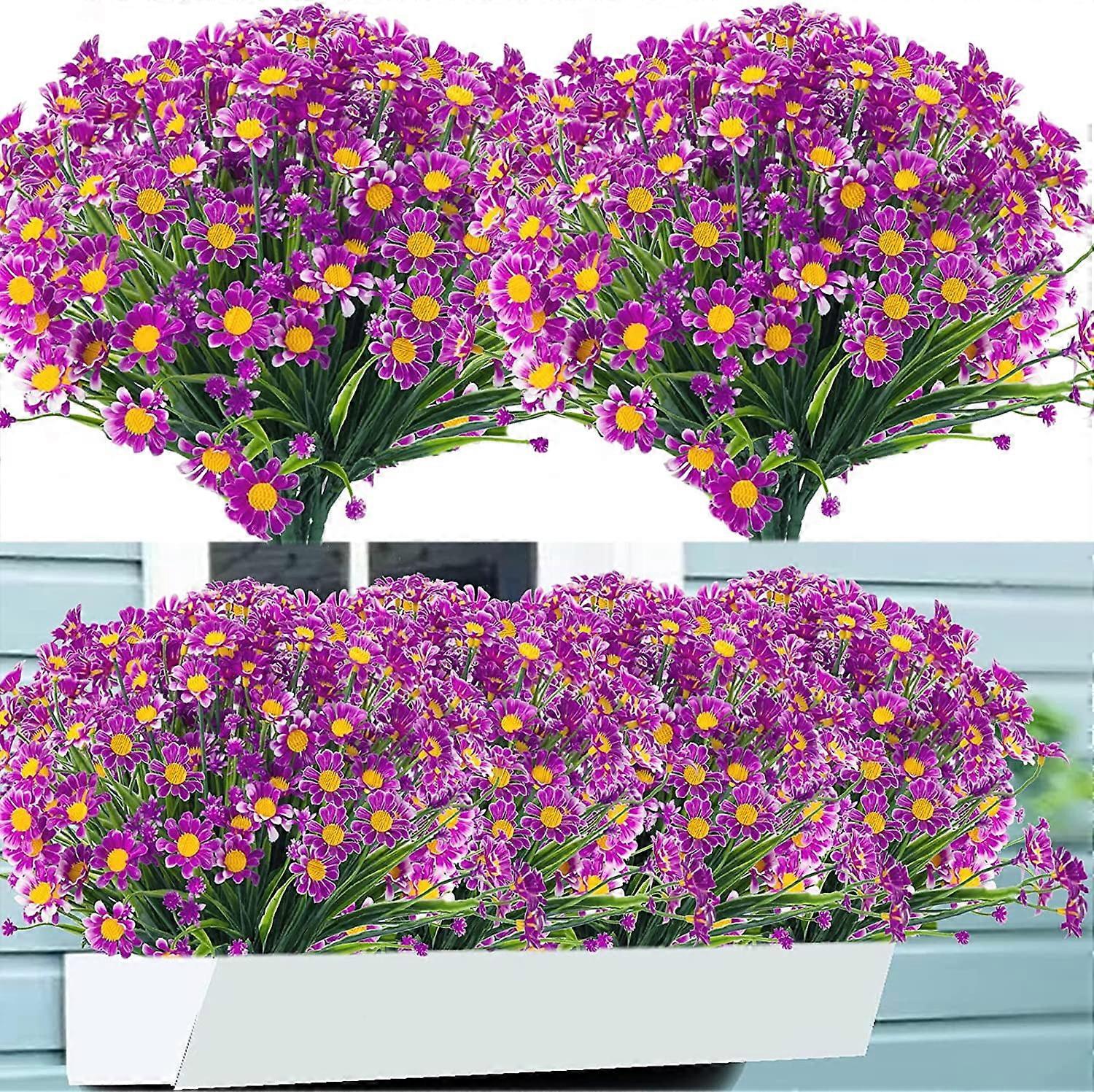 8 Bundles Artificial Daisy Mums, Fuchsia, Outdoor Fake Flowers for Spring Summer Decor, No Fade Faux Plastic Plants, Garden Porch Window Box -