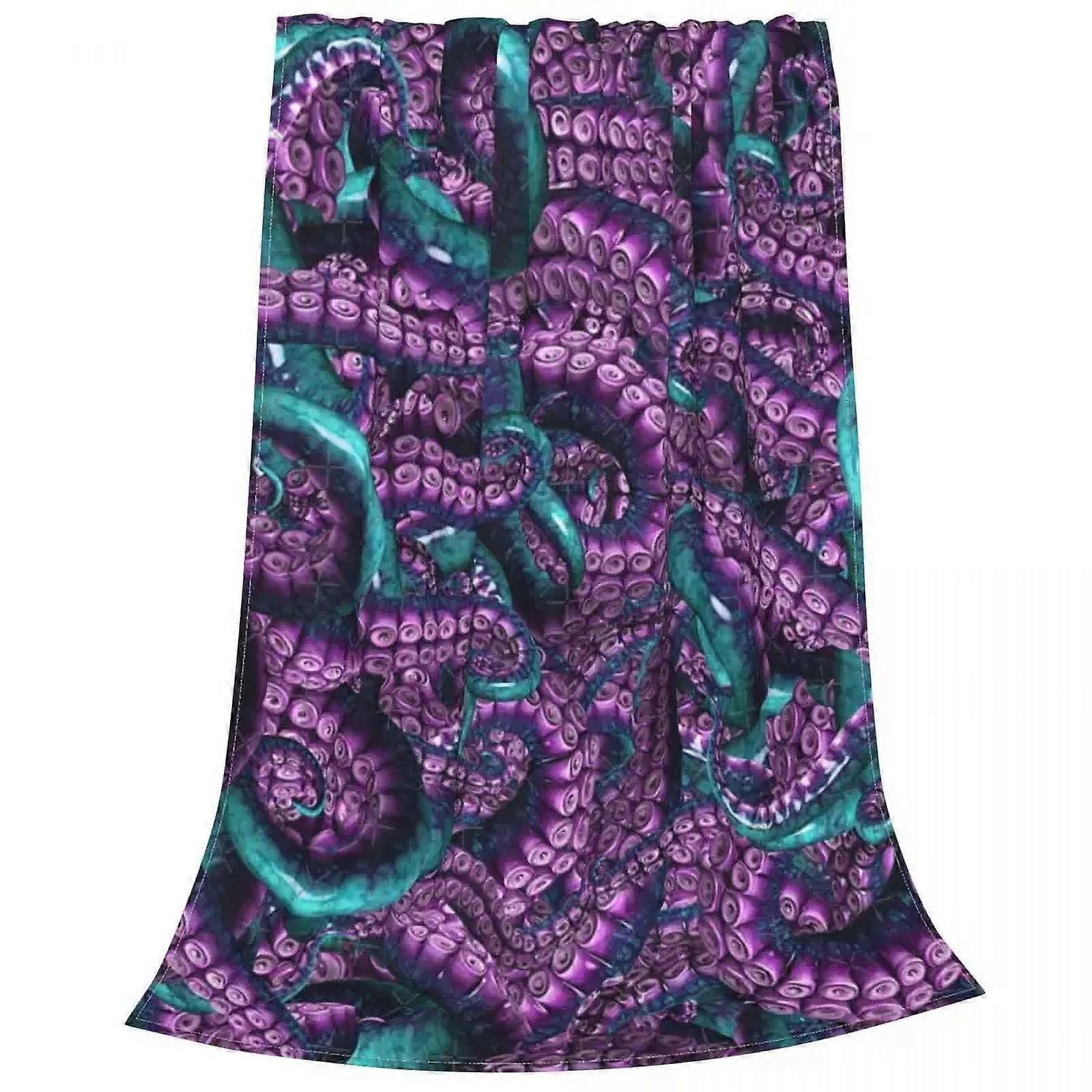 Tentacles Teal And Violet Blanket Cover octopus horror sea monster Flannel Throw Blanket Bedroom Sofa Portable Ultra-Soft Warm