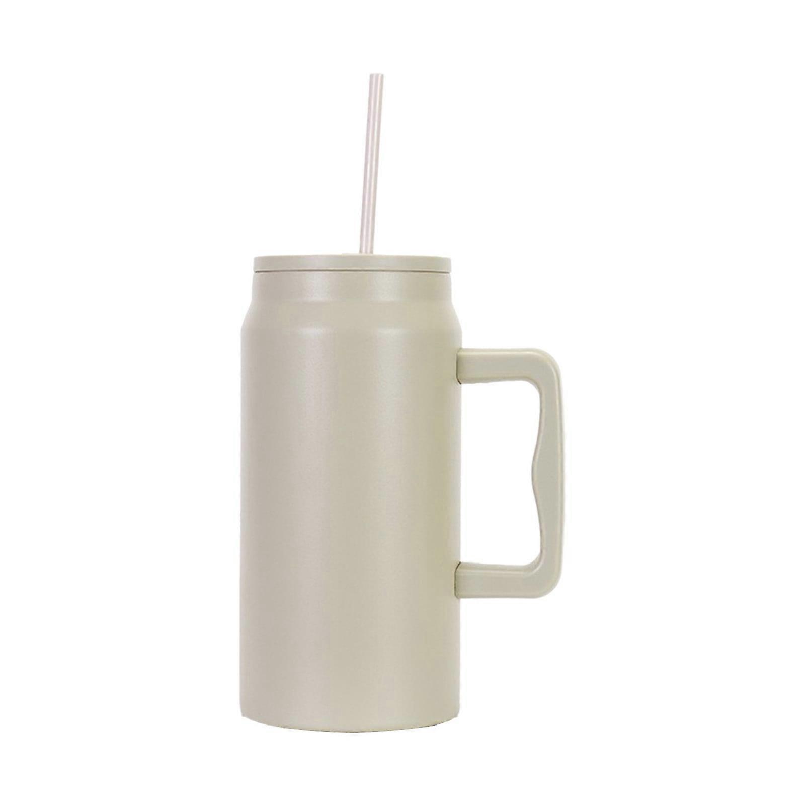 Tumbler with Handle and Straw, Stainless Steel Vacuum Insulated Travel Coffee Mug with Leak Proof Lid, Metal Water Cup with Straw, BPA Free, Khaki