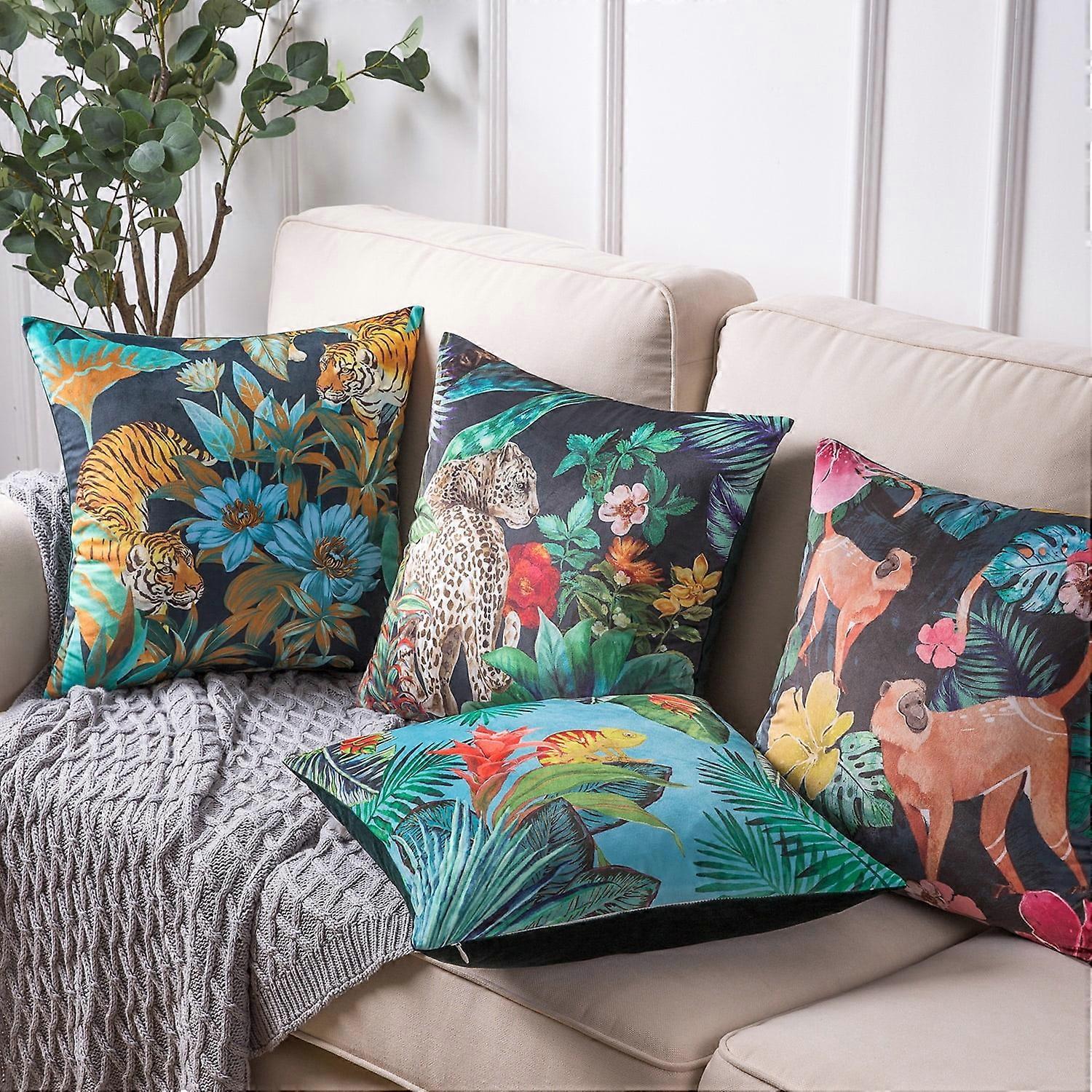 Phantoscope Tropical Series Decorative Throw Pillow Covers, Mysterious Jungle, 18" x 18", Set of 4