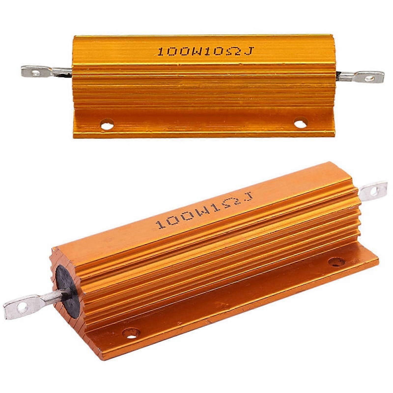 2Pcs Gold Aluminum Clad Power Resistor Resistance 100W 1 Ohm 1R & 10 Ohm 10R