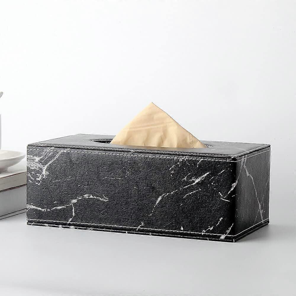 Leather Tissue Box Holder - Waterproof Rectangular Tissue Box Cover Vintage Napkin Paper Holder for Home,Office&Car Decor (Black Marble)