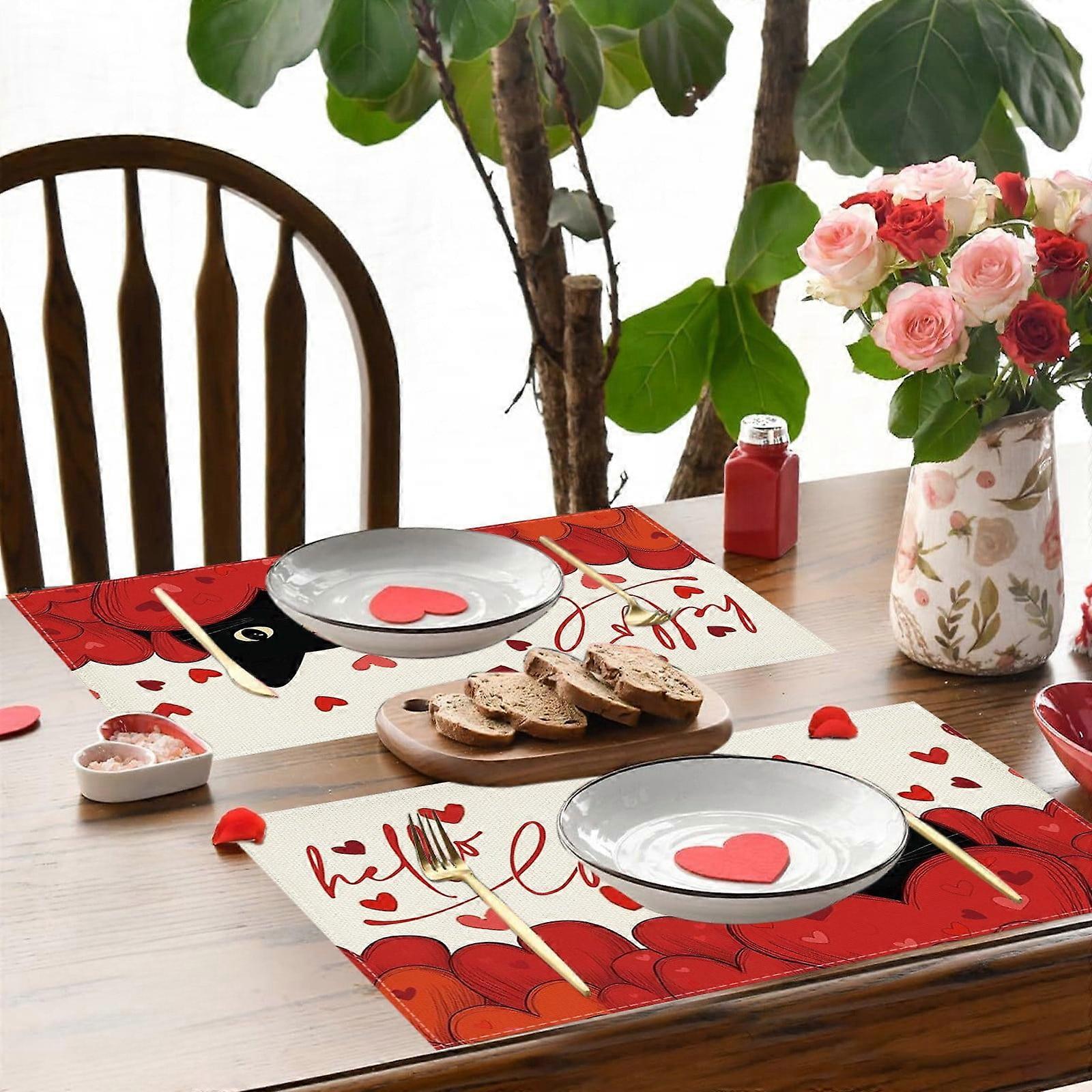 Racsoh Valentine's Day Placemats, Red Love Heart Print, Romantic Holiday Table Decor for Home Kitchen (Compatible with)
