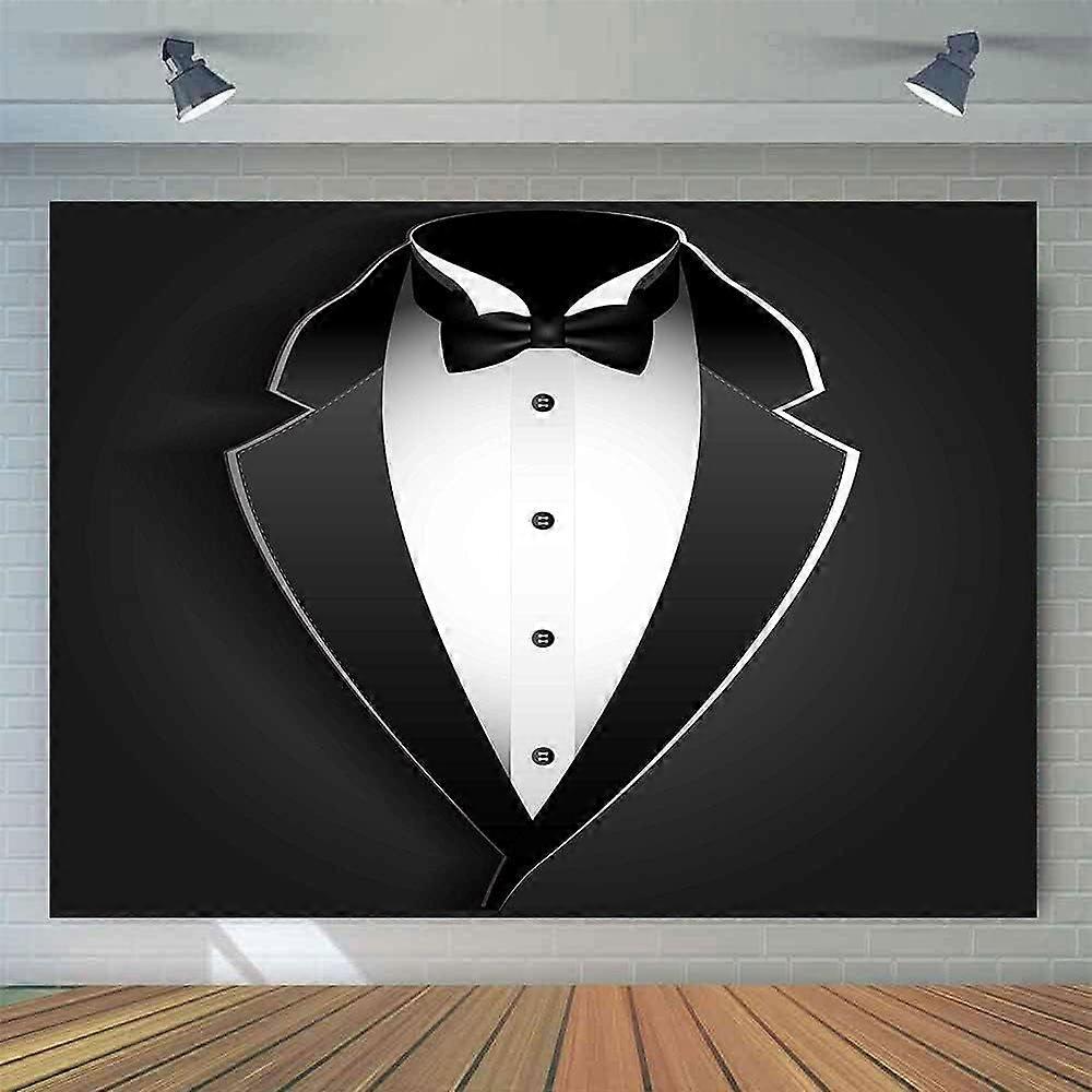 Black Tuxedo Backdrop for Men, Black & White Bow Tie Suit, Luxury Birthday Dinner Photography, Photo Booth Banner Decor