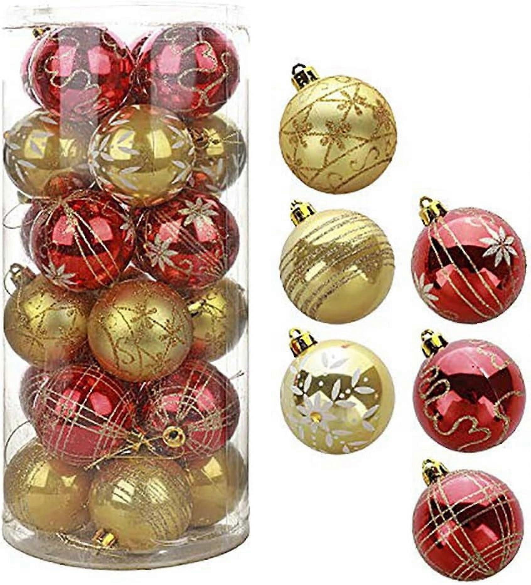 24ct 2.8" Christmas Ball Ornaments, Shatterproof Decorative Hanging Baubles, Delicate Painting Glittering Set (Red-Gold)