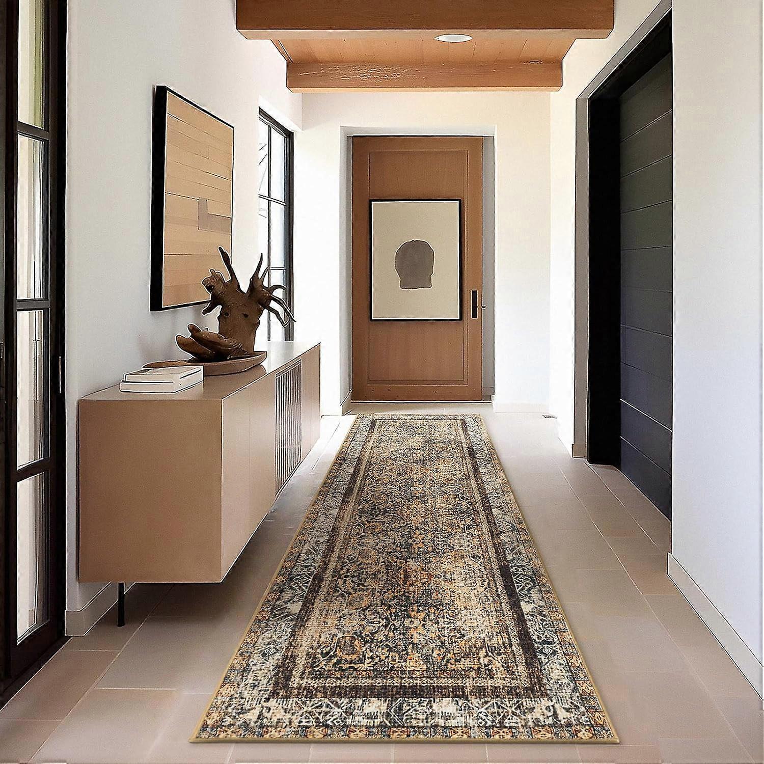 Boho Washable Non-Slip Hallway Runner Rug 2x8 ft, Dark Coffee - Compatible with Kitchen, Entryway, Laundry, Bedroom Decor
