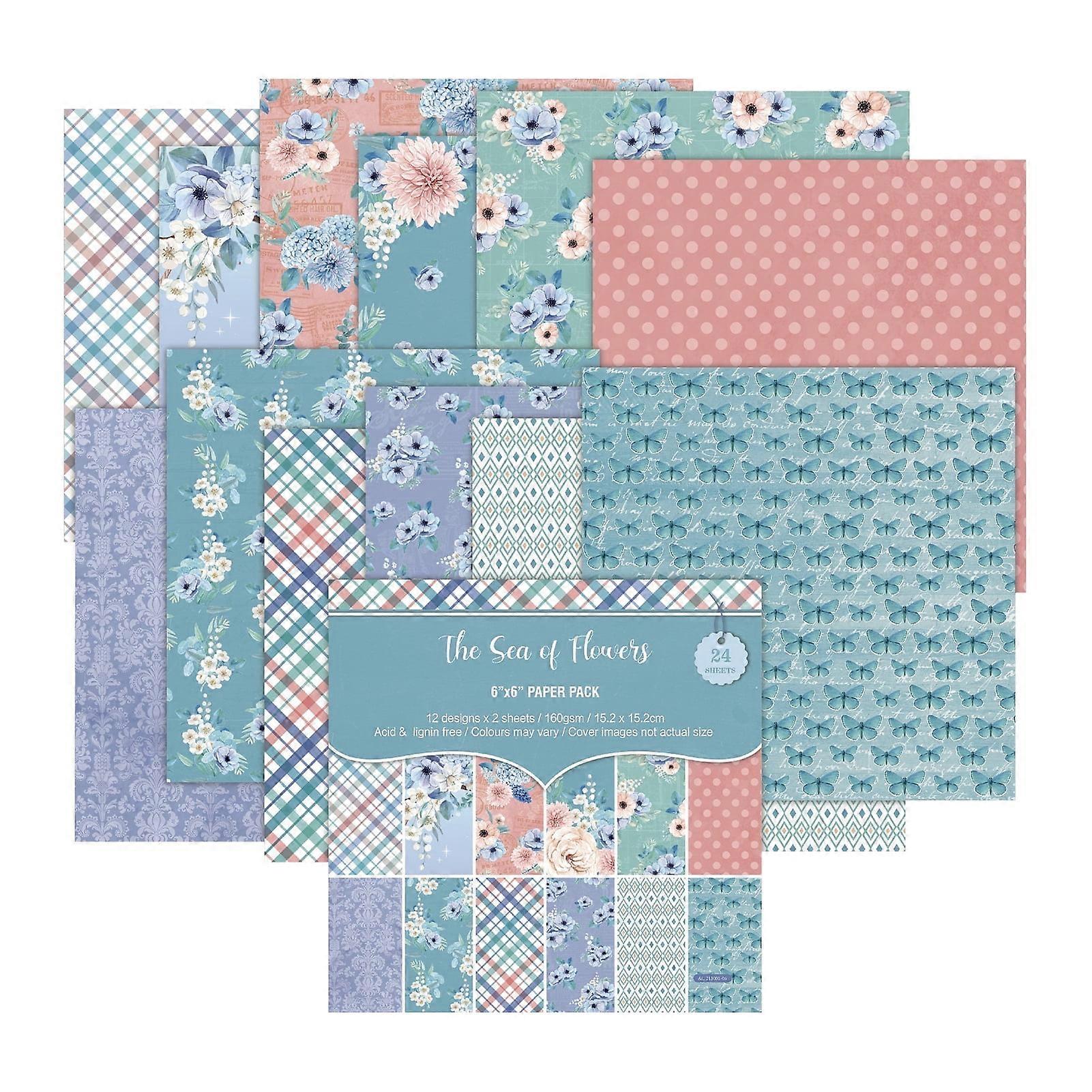 Farfi 24Pcs/Set Scrapbook Paper DIY Retro Vintage Flower Print Design Background Paper for Greeting Cards (Type B)