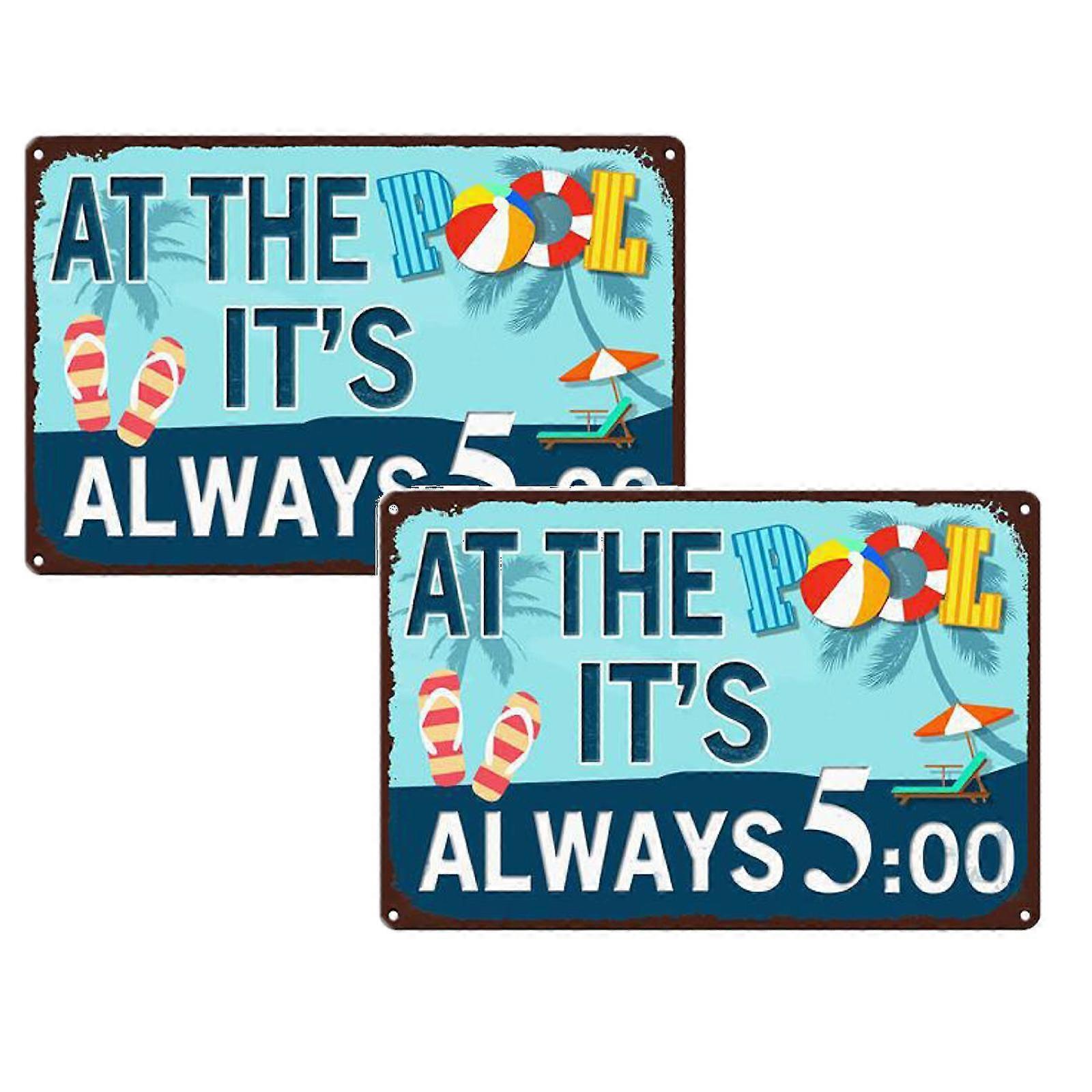 Swimming Pool Metal Sign Decor Pool Gifts For Pool Summer Garden Outdoor Decorations *2PCS