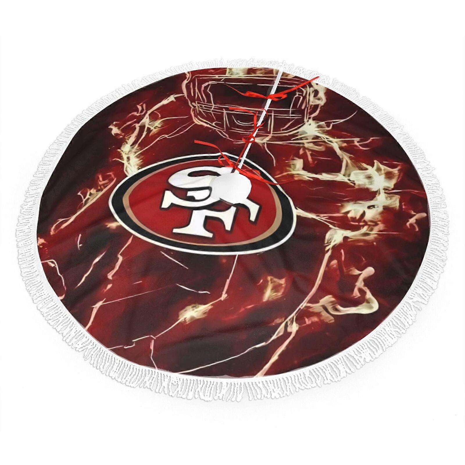 SF 49ers Christmas Fringe Plush Tree Skirt, compatible with NFL decor, Football Team Colors, Easy Install, Sports Fan Gift (30" 36" 48")