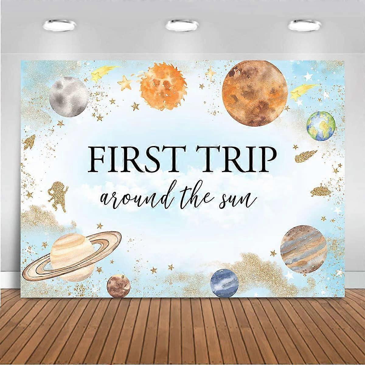 First Trip Around The Sun Banner - Space Theme 1st Birthday Decorations, Galaxy Planet Cake Table Backdrop, Photo Booth for Boy