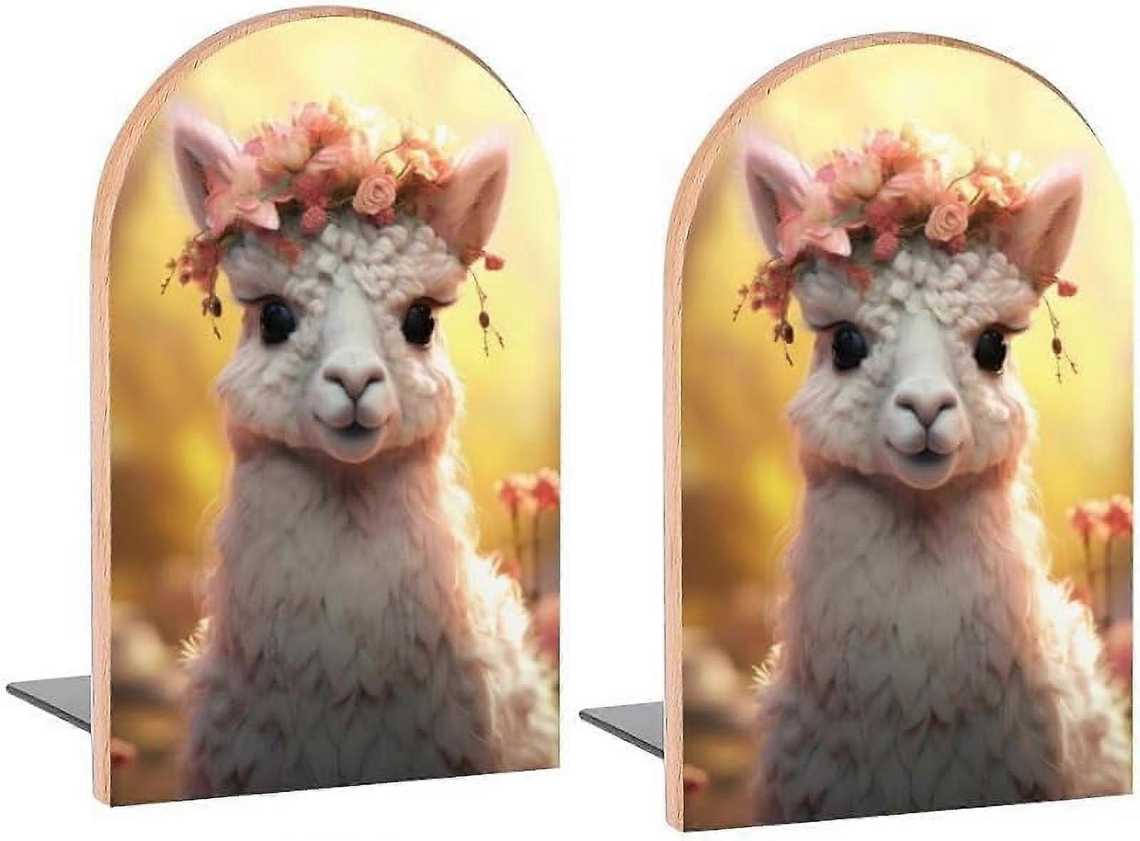 KiuLoam Vintage Pink Rose Floral Wood Bookends, 1 Pair Non-Skid Supports for Books, DVDs, Magazines, Shelves Decor