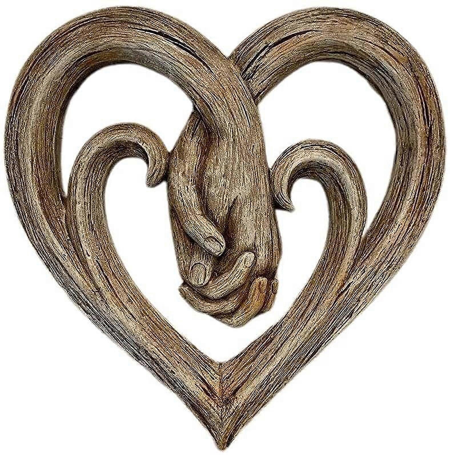 Gintdinpu Heart Holding Hands Wall Decor - Rustic Wooden Texture Handshake Sculpture, Compatible with Home Indoor Wall Art for Living Room, Bathroom