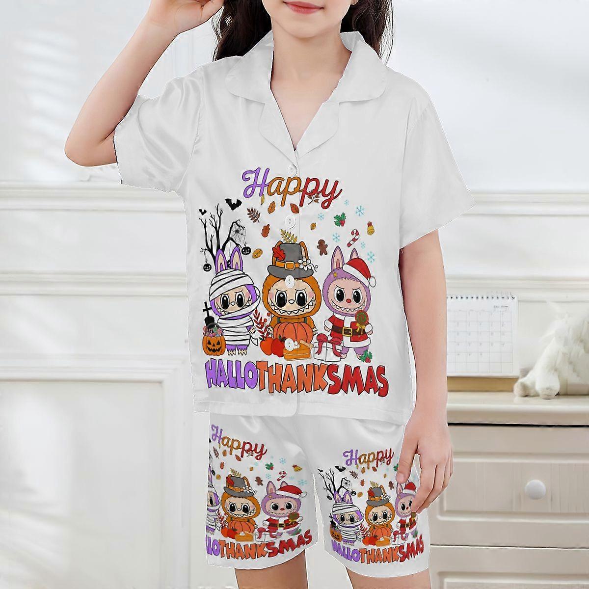 HalloThanksMas LABUUBU Christmas Kids Crew Neck Sweater Cute Cartoon Holiday Pullover, Soft Polyester Spandex Winter Top for Boys & Girls S