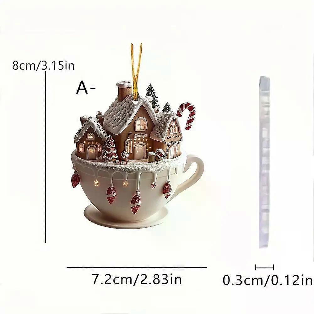 Christmas 2D Acrylic Coffee Cup Car Ornaments Cartoon Snowhouse Xmas Tree Hanging Pendants Noel Natal Merry Christma Decor 2025